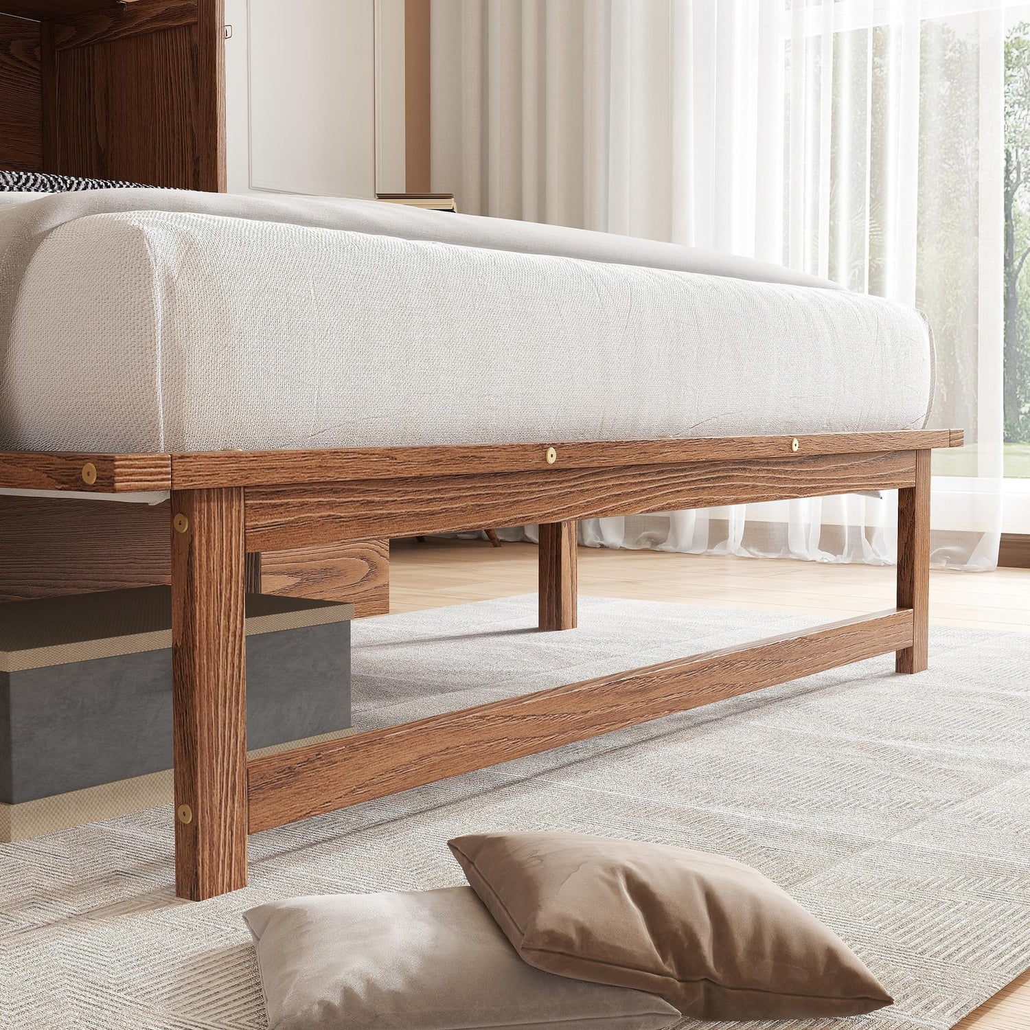 KEIKI Full Size Murphy Bed Cabinet - Pine Folding Bed with USB Charging, Removable Shelves & Desktop, Converts to Cabinet (Mattress Not Included), Walnut