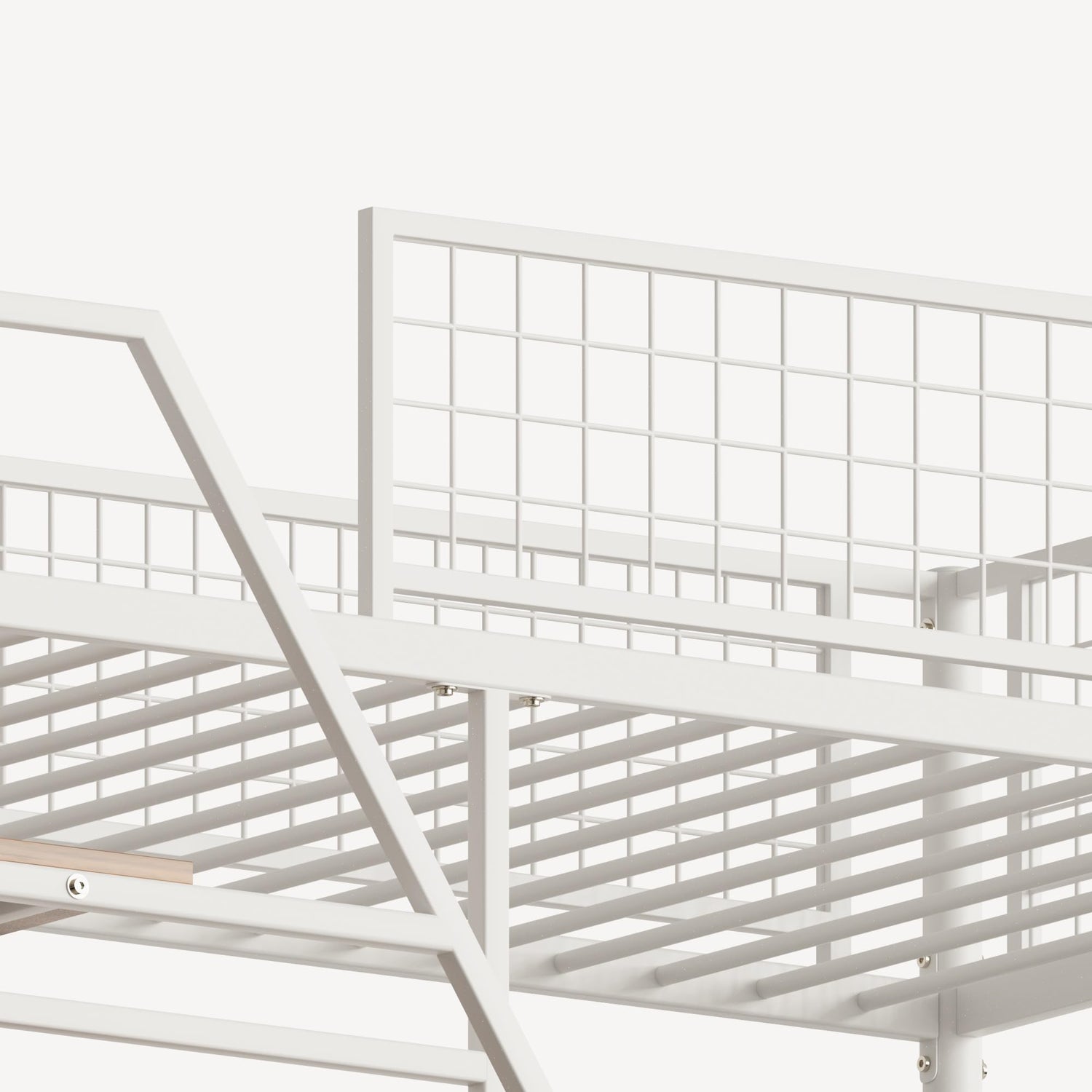 - 【Loft Bed with Desk】The twin size loft bed can be configured as two separate spaces. While satisfying rest, the under the top bunk bed provides more personal space for work or leisure. Built-in desk and a charging station in front of the desk, creates a productive, simple work, study or gaming area. Perfect for space-saving needs.