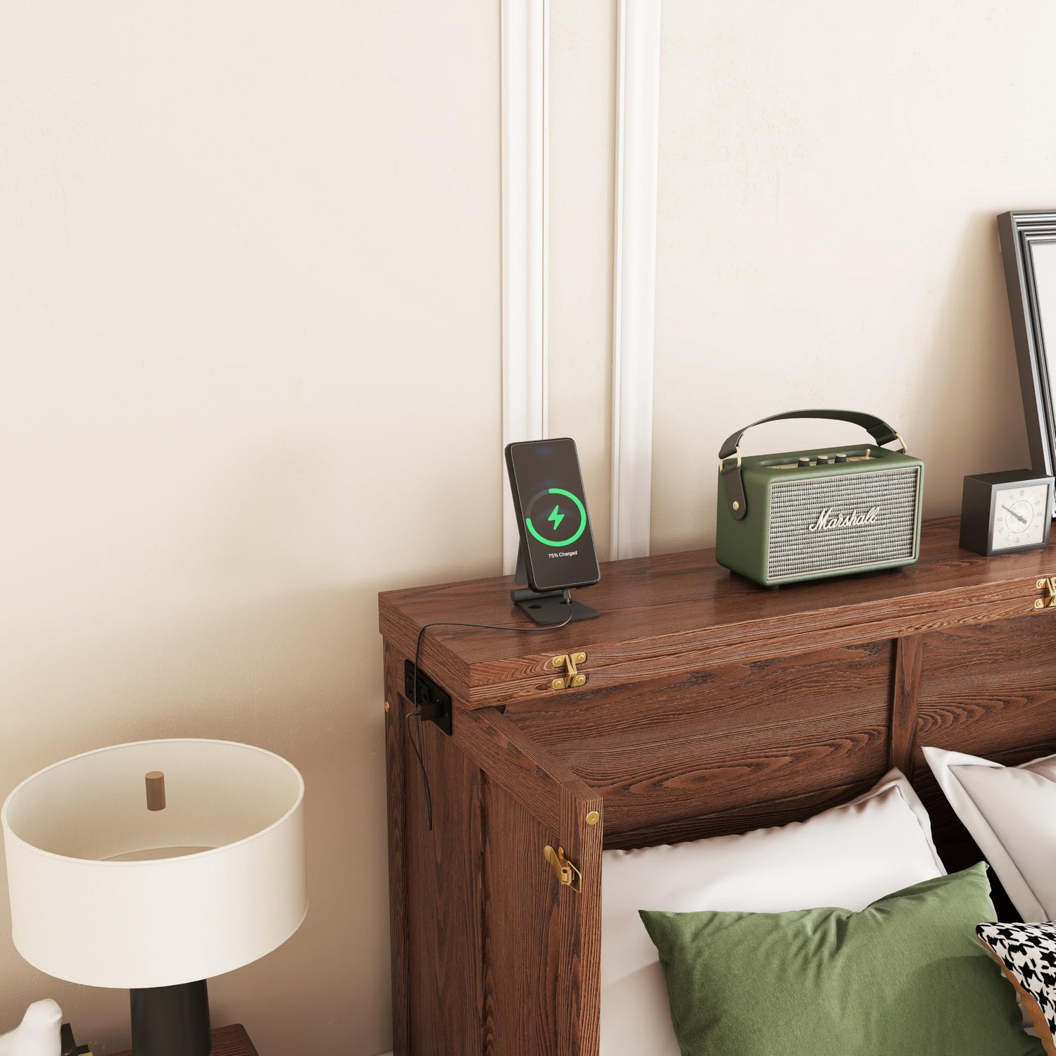 - [Charging Station] The bed design is truly versatile and practical, offering both a space-saving solution and a convenient charging facility. The built-in charging station has two power outlets and two USB ports for quick and easy charging of phones, laptops, and other electronic devices, keeping the area organized and clutter-free.