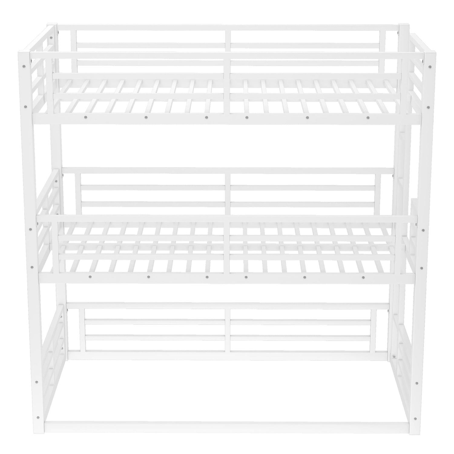 KEIKI Twin over Twin over Twin Bunk Bed, Metal Triple Bunk Bed with Safety Guardrails, Heavy-duty Bunk Bed with Noise-reduced Design, White
