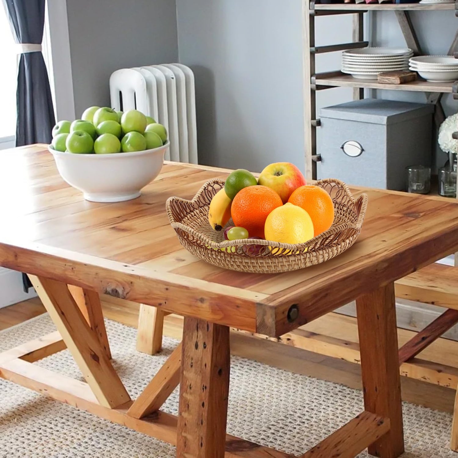 - WIDE USAGE - The rattan fruit bowl is not only suitable for storing or displaying bread, fruits, vegetables, candies, snacks, and other food items, but can also be used to organize small things such as keys, eyeglasses, remote controls, and others.