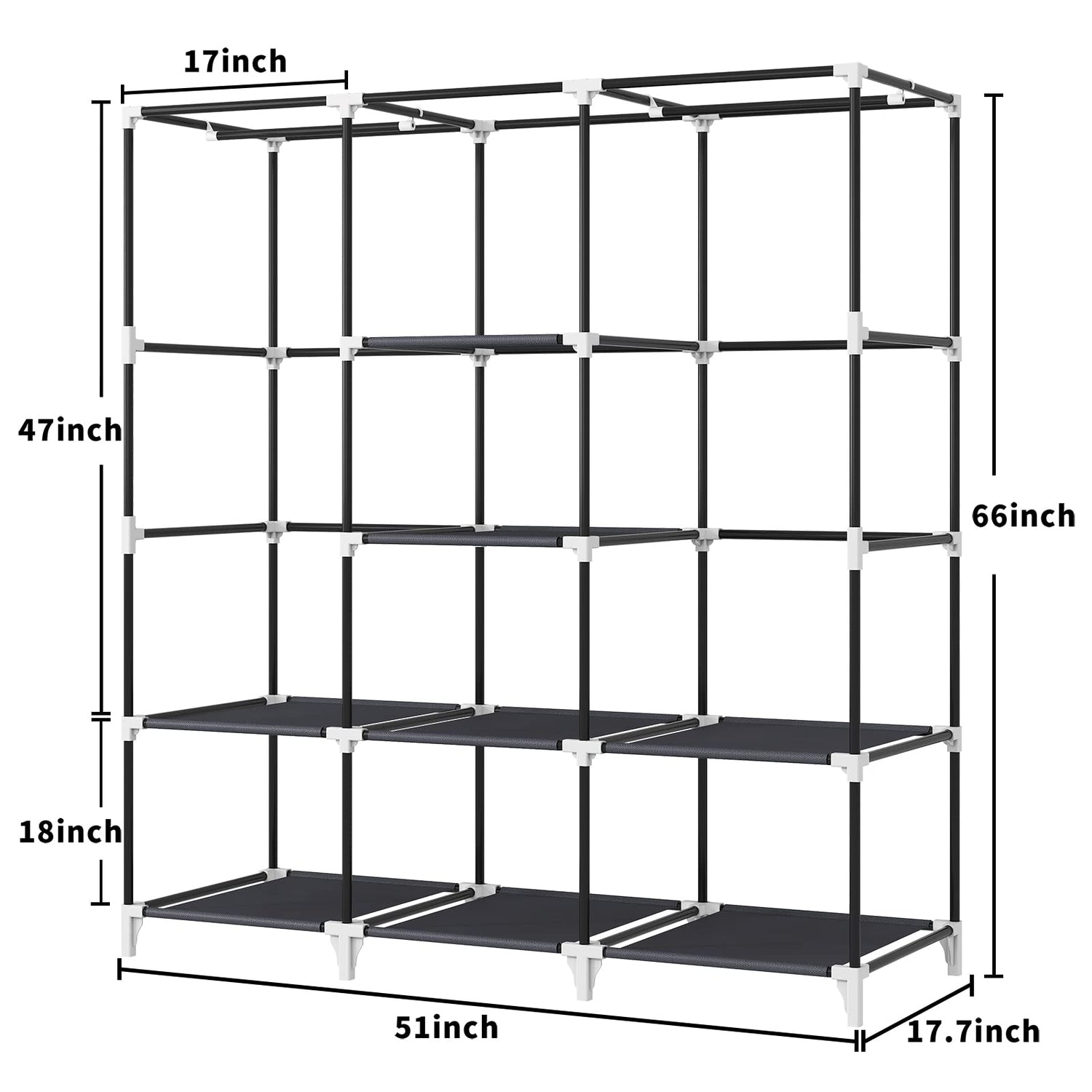 - SPACIOUS STORAGE SPACE:A total size of portable wardrobe is 51"L x 17.7"W x 66"H, It’s suitable for you to organize clothes of your small room, cloakroom, clothing store, It will offer you large storage space for your Long-Term storage needs.
