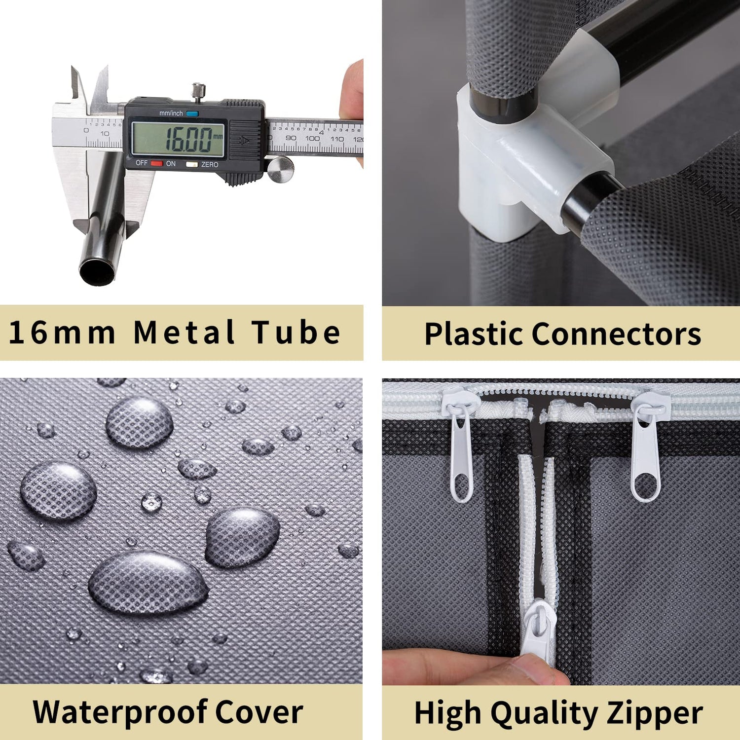 - STURDY STRUCTURE: The portable wardrobe closet selects 16mm diameter round tube and PP plastic connector with a non-woven fabric zipper cover, It is very strong to bear heavy weight. The frame is stable and not easy to bend, ensuring long-lasting use.