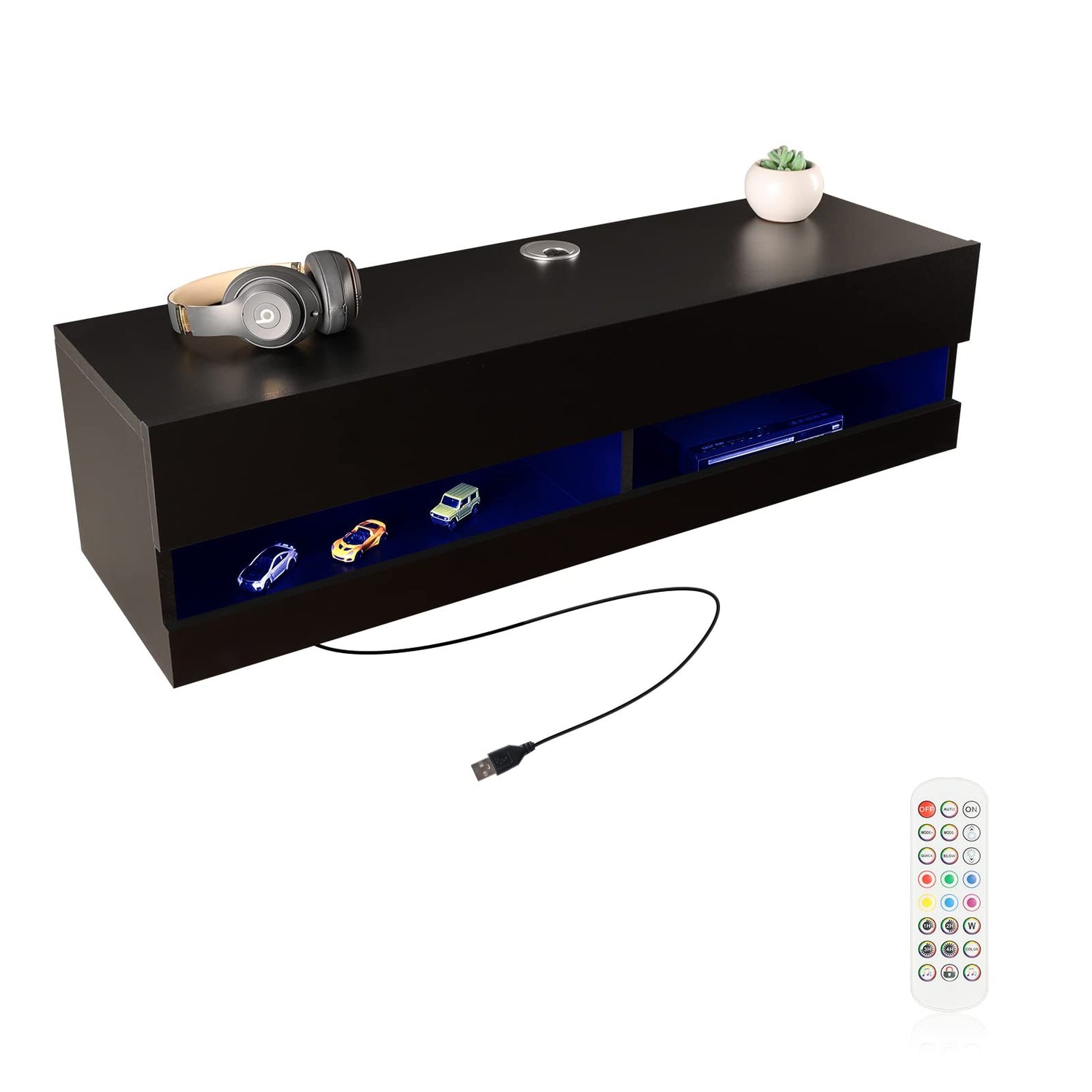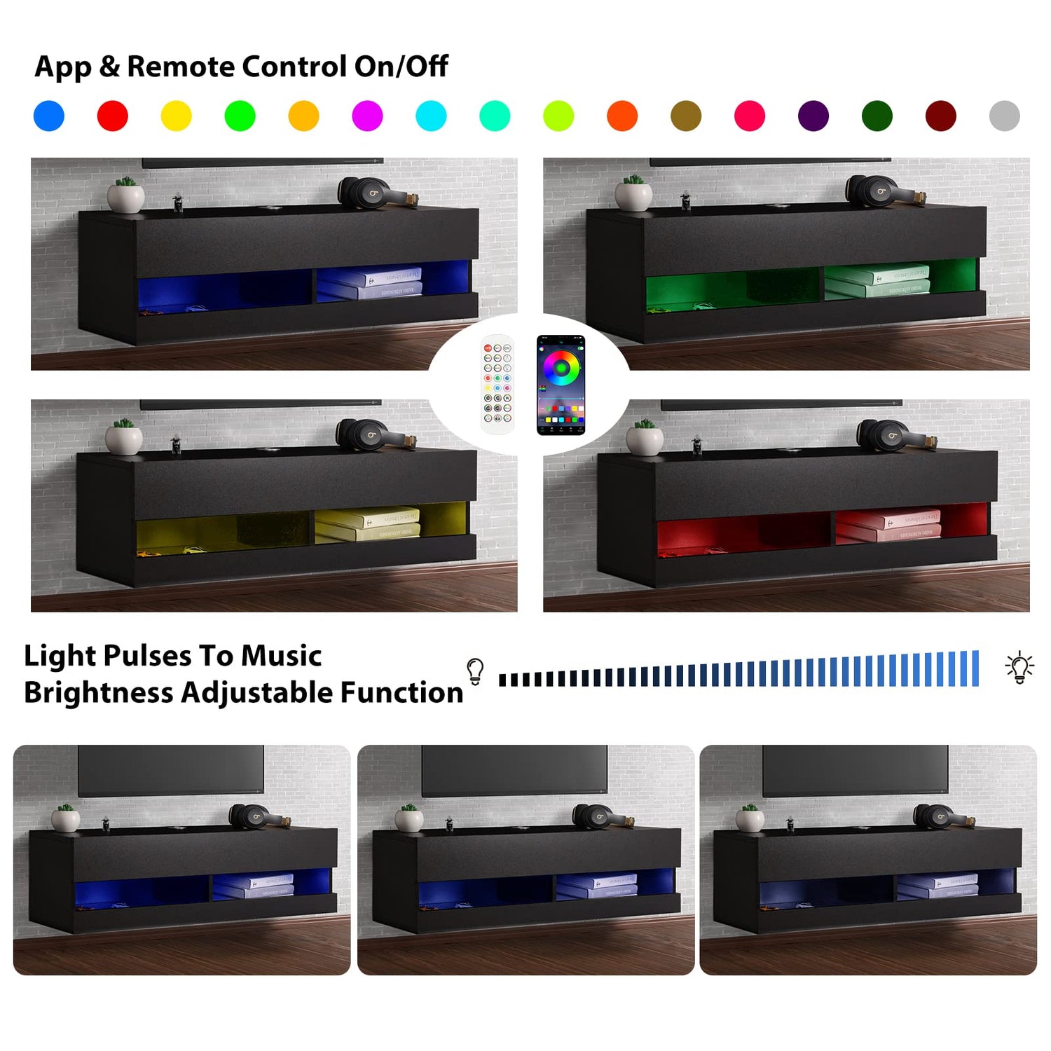 • PRACTICAL SIZE: The dimensions of the floating tv console is 39.4"(L) x 11.8"(W) x 10.2"(H), Black. Compatible with wooden, concrete or solid brick walls. The modern design of the TV cabinet suits all styles of decoration and adds sparkle to your room, it's suitable to living room, bedroom