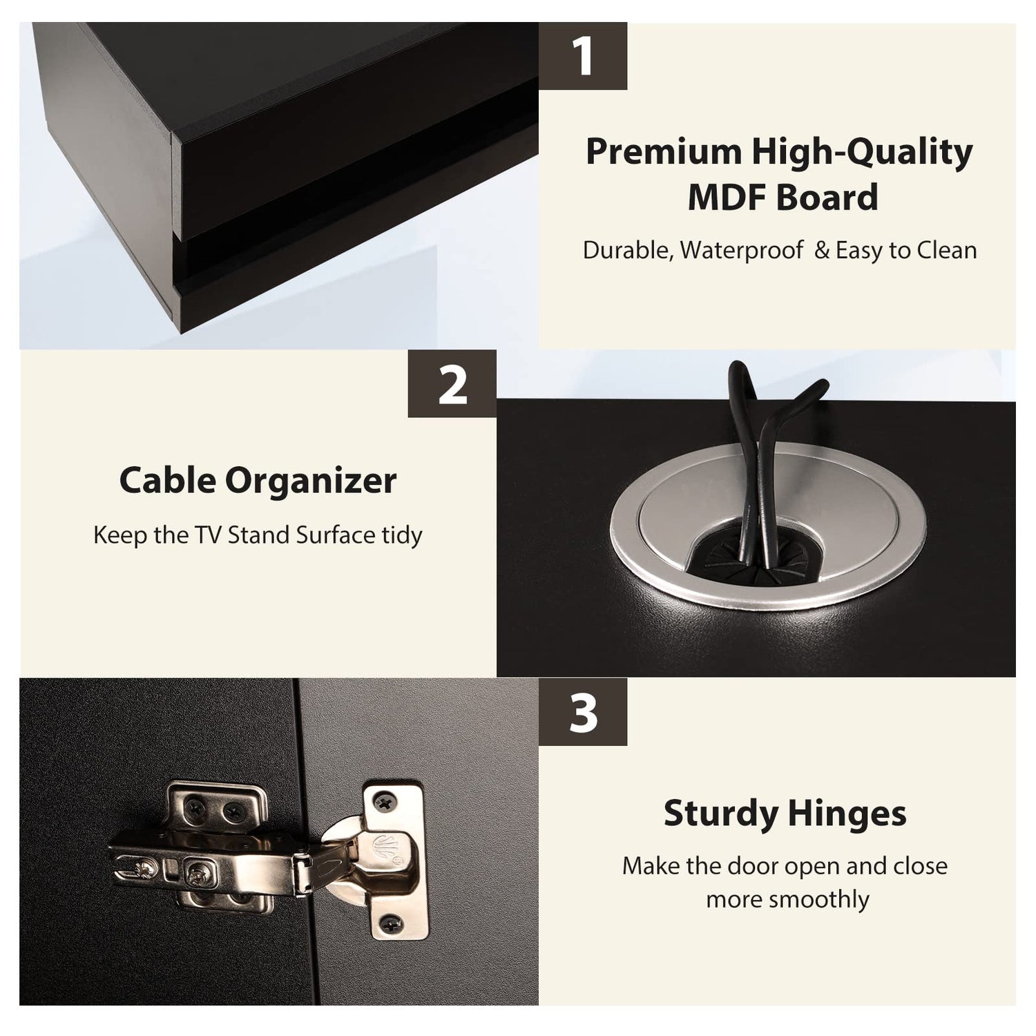 • EASY TO MAINTAIN: Our modern floating entertainment center has raised edges and flap door, which can blocks dust attacks. Wide count top is waterproof and easy to clean. Simply wipe with a damp cloth or deep clean with a mild detergent