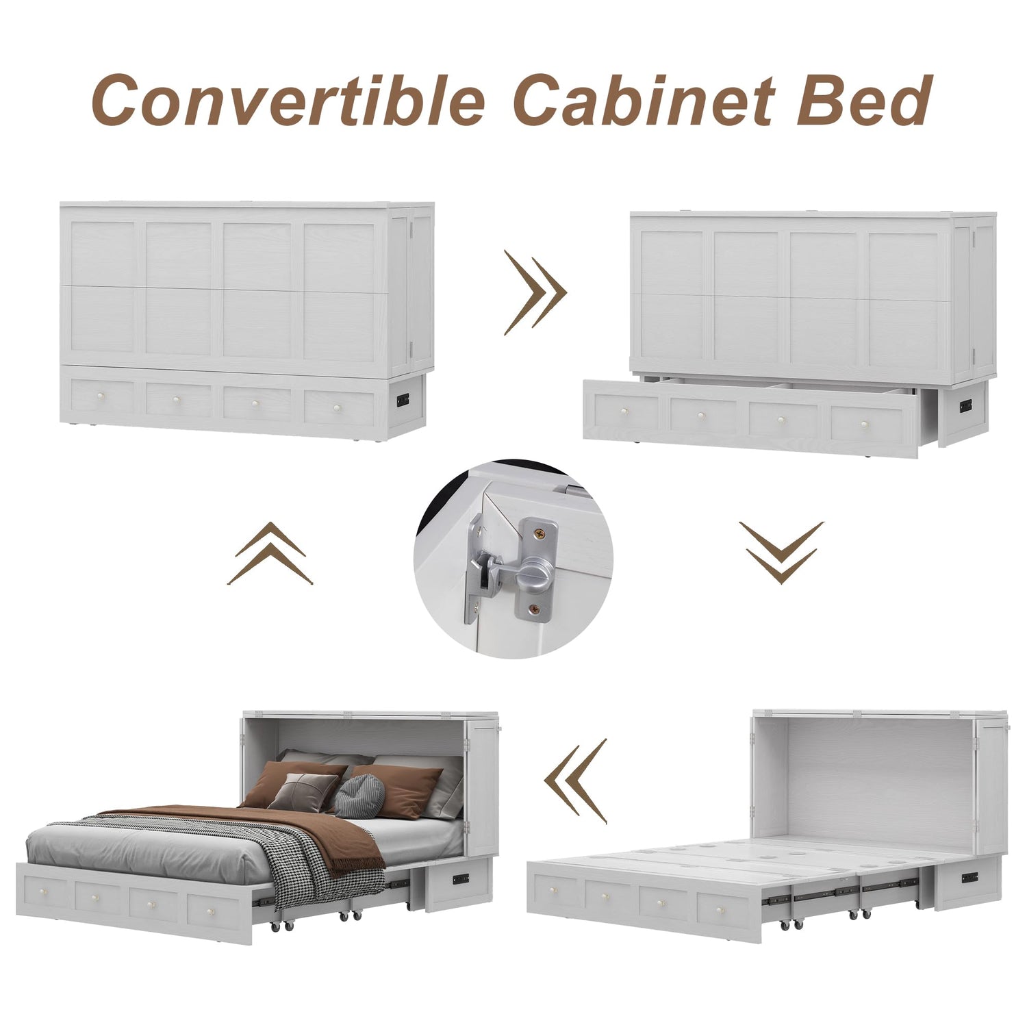 Keloyid Solid Wood Murphy Bed Cabinet:Queen Size Murphy Bed with USB Charging Station and Large Storage Drawer for Home,Optimize Sleeping Space(Mattress Not Included) Ivory White-11