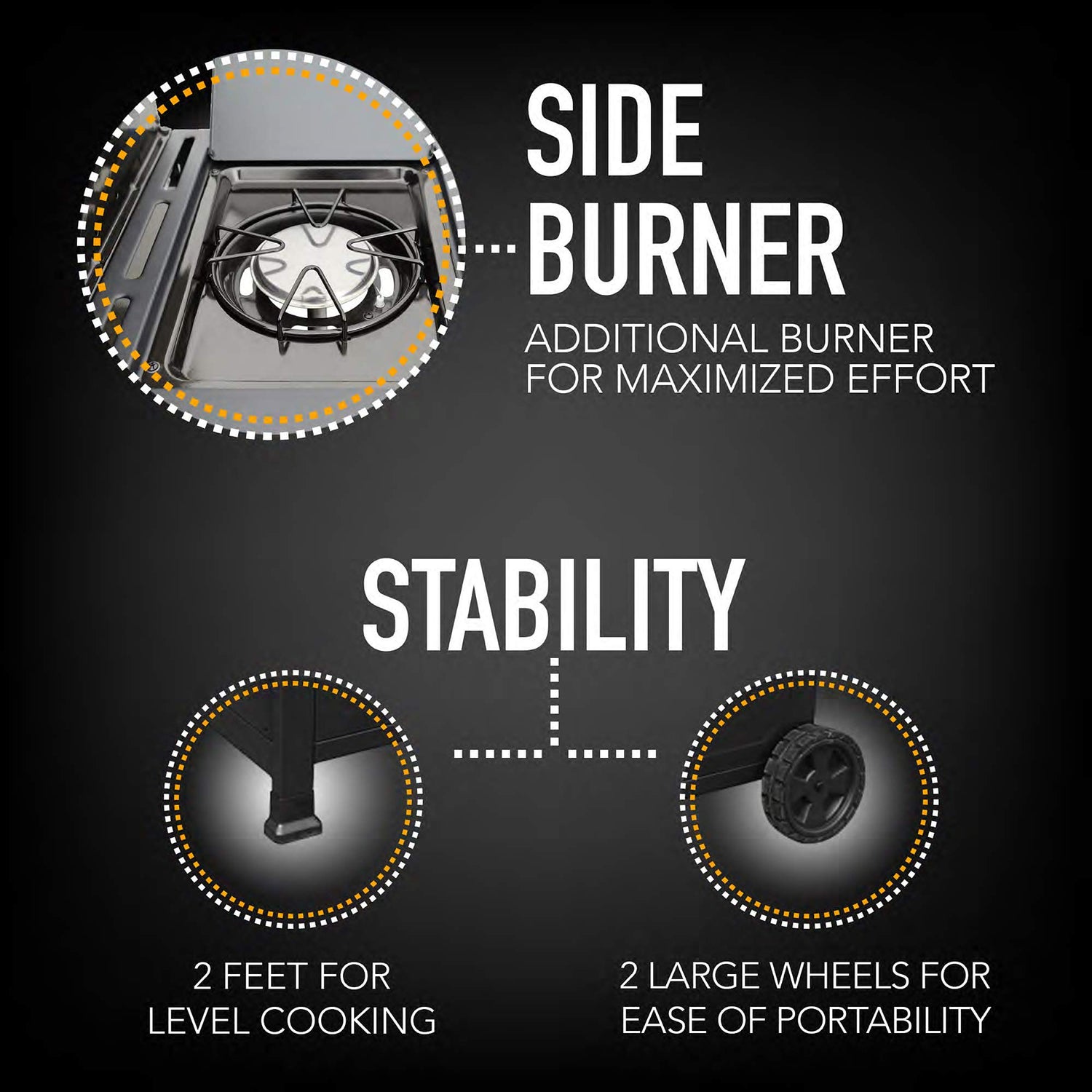 - Side Burner for Added Versatility – The convenient side burner allows you to prepare sauces, soups, and side dishes simultaneously, expanding your cooking options.