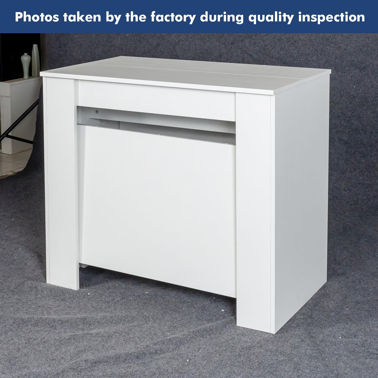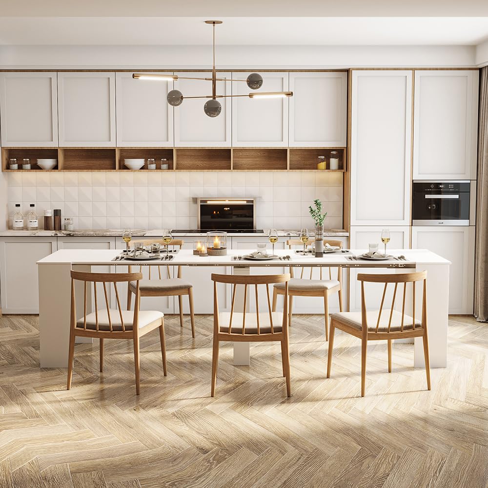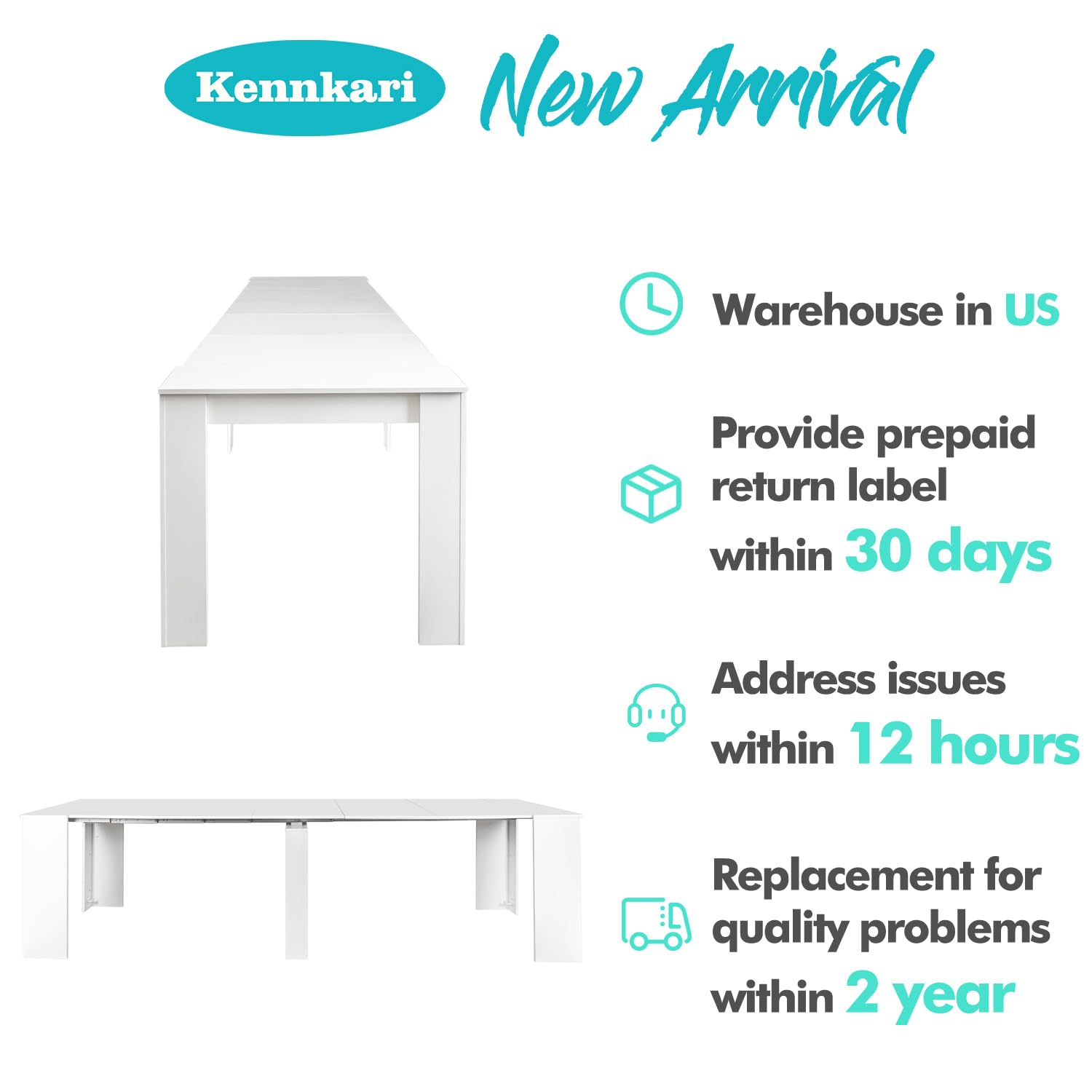 Kennkari Modern Expandable Dining Table for 2-10 People, Large Extendable Dining Room Table for Kitchen Living Room, Rectangle Kitchen Table (White 118" W)