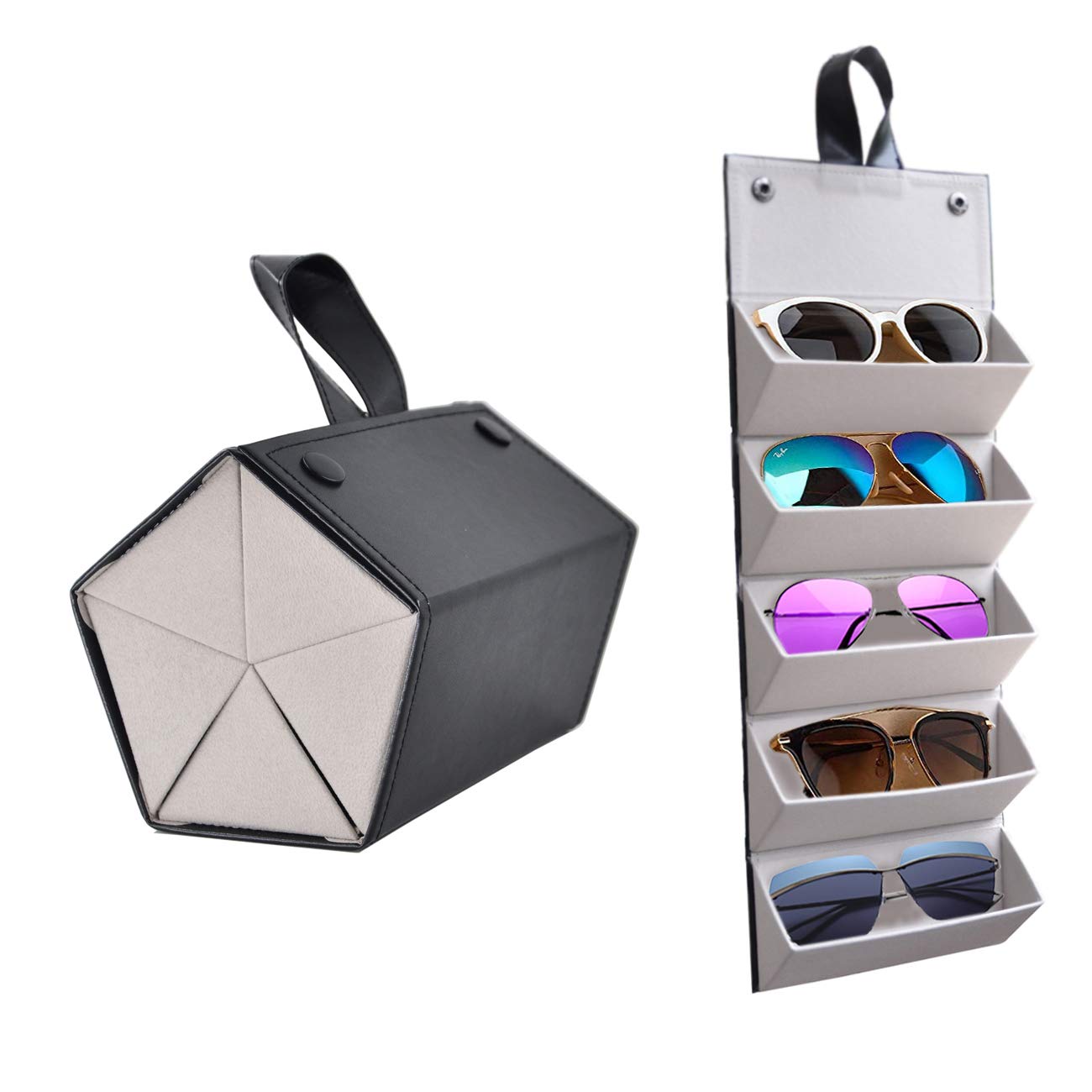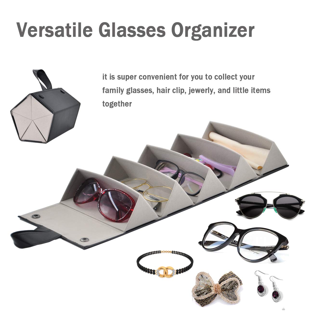 Kenpal Sunglasses Storage Organizer Holder Foldable Travel Case with 5 Slot Compartments for Multiple Glasses (Black)