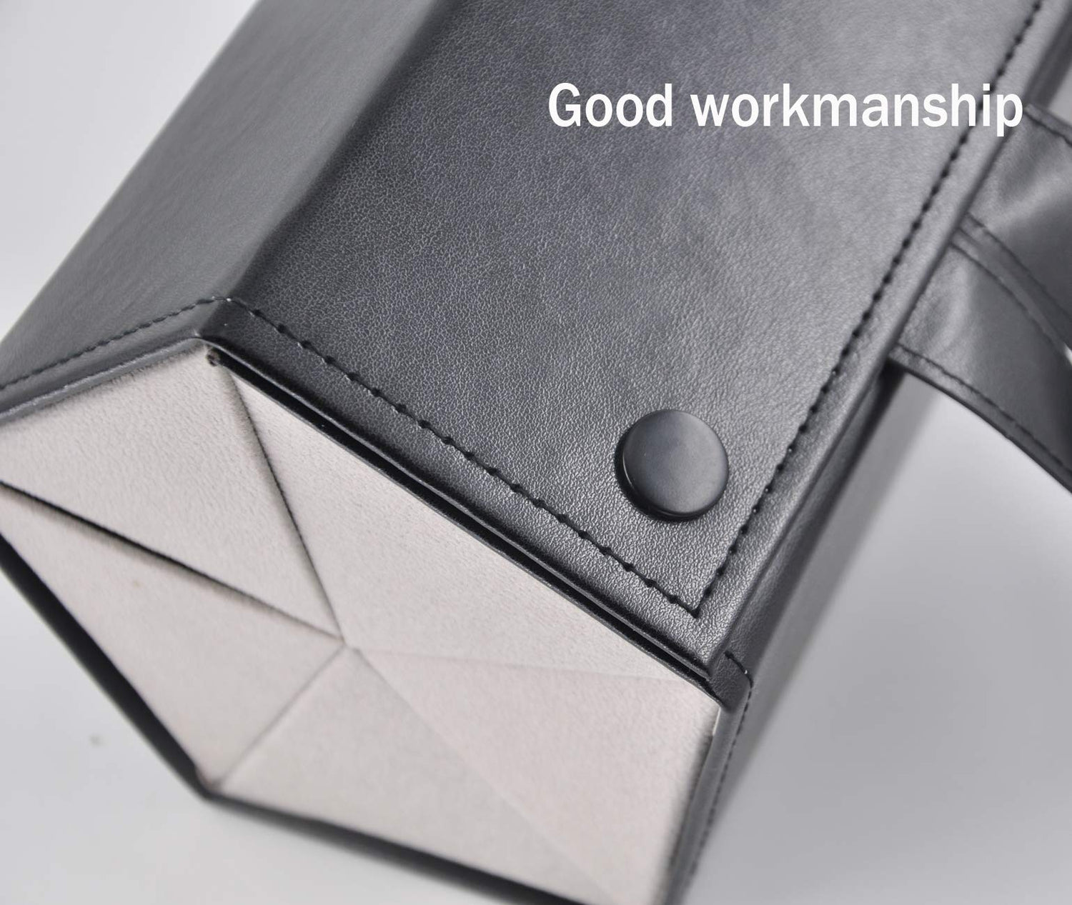 - Innovative Design - Our sunglass organizer is foldable, roll up to be a beautiful pentagonal box, the size is 6.5 x 4.7x 3.2 inch, Unfold size is 18.5 x 3.2 inch, with the hanging strap design, the glass holder can be easy carrying and hanging up for display
