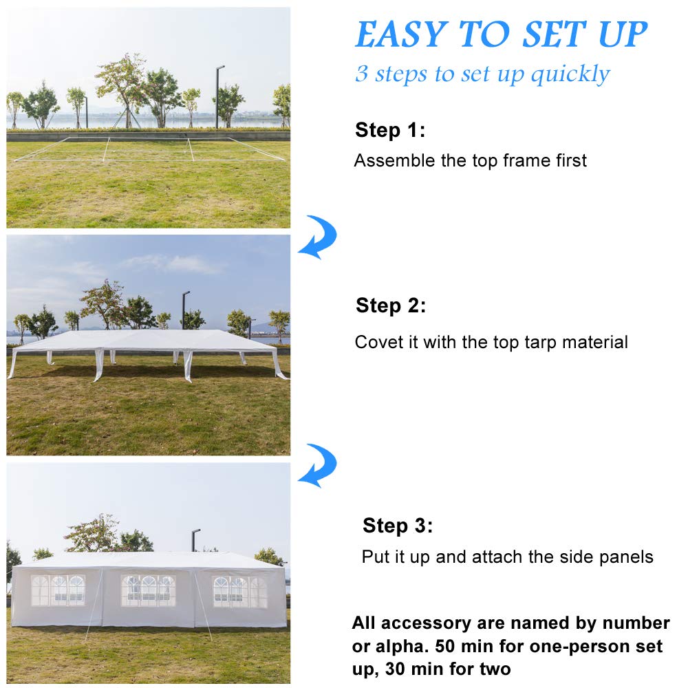 - ★ 10 x 30 Gazebo Canopy: Dimensions 10 X 30 Ft,Designed into 5 sides,with brighter church windows offer great elegance and deliver the needed light,Every side has a hole to tie the nail firmly and make the tent more stable.