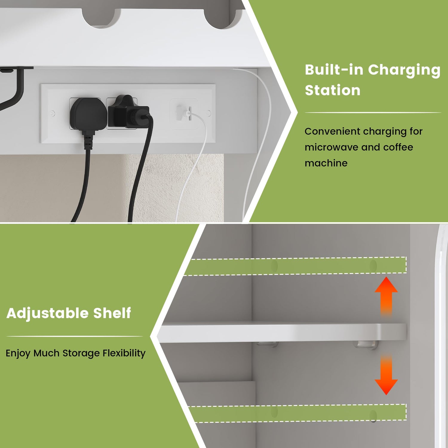 - 【All-in-One Coffee Bar Cabinet with Storage】The 40"×15.7" faux-marble countertop creates a dedicated coffee station cabinet for brewers and decanters. Below, 2 adjustable shelves + 1 deep drawer organize snacks/bar tools—consolidating kitchen clutter into a sleek wine bar coffee station .