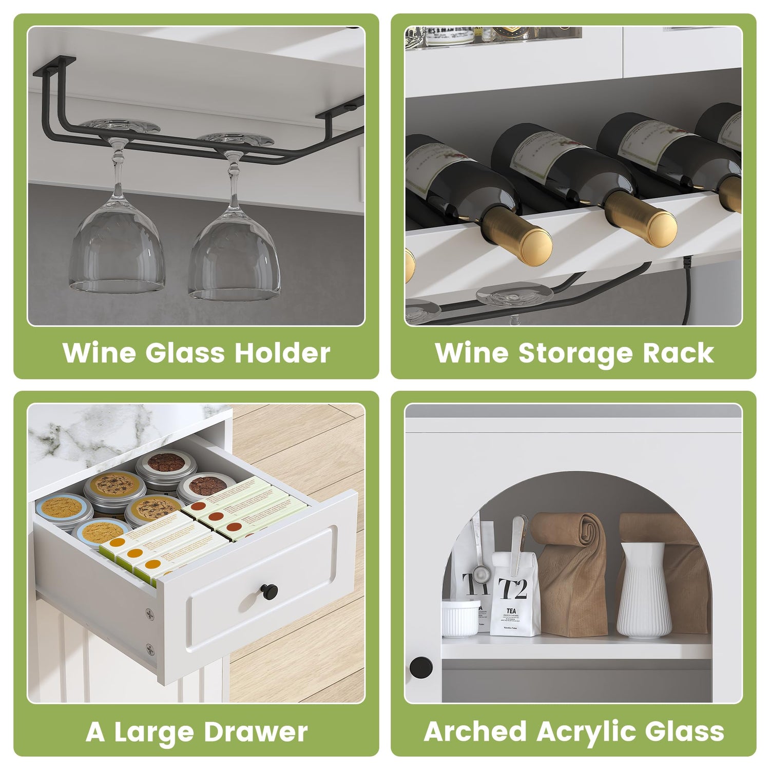 - 【Stylish and Sturdy Design】Classic white MDF body with hand-carved doors and anti-tip design. Waterproof marble tops withstand spills, making these bar cabinets for home both pet-safe and gallery-worthy.