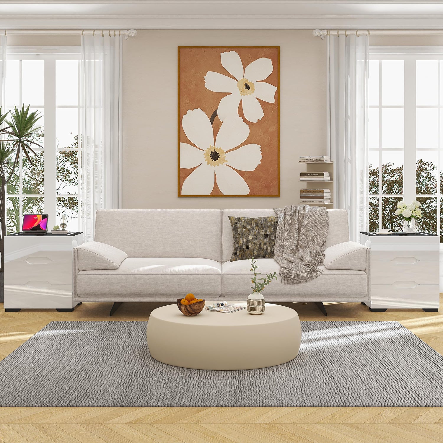 - 🌈🌞【Durable & Fashion Design】Made of high quality MDF board, this nightstand with drawer has an elegant smooth high gloss finish with graceful flowing lines that exude a sophisticated elegance that adds glamour and beauty to your home decor. The tempered glass tabletop is not only noble, but also has the characteristics of high temperature resistance, waterproof and wear resistance.