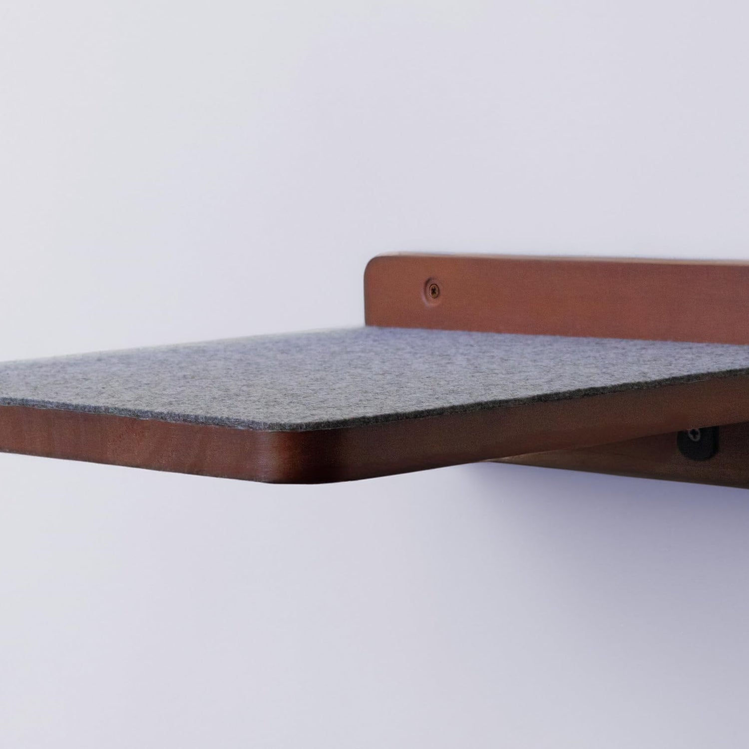 Kerwis Premium Cat Shelves – Cat Shelf in Walnut Brown with Replaceable Carpet with 2 Pine Wood Steps (3pcs). Sturdy Perches for Wall for Lounging and Playing, Cat Hammock Bed Furniture for Cats