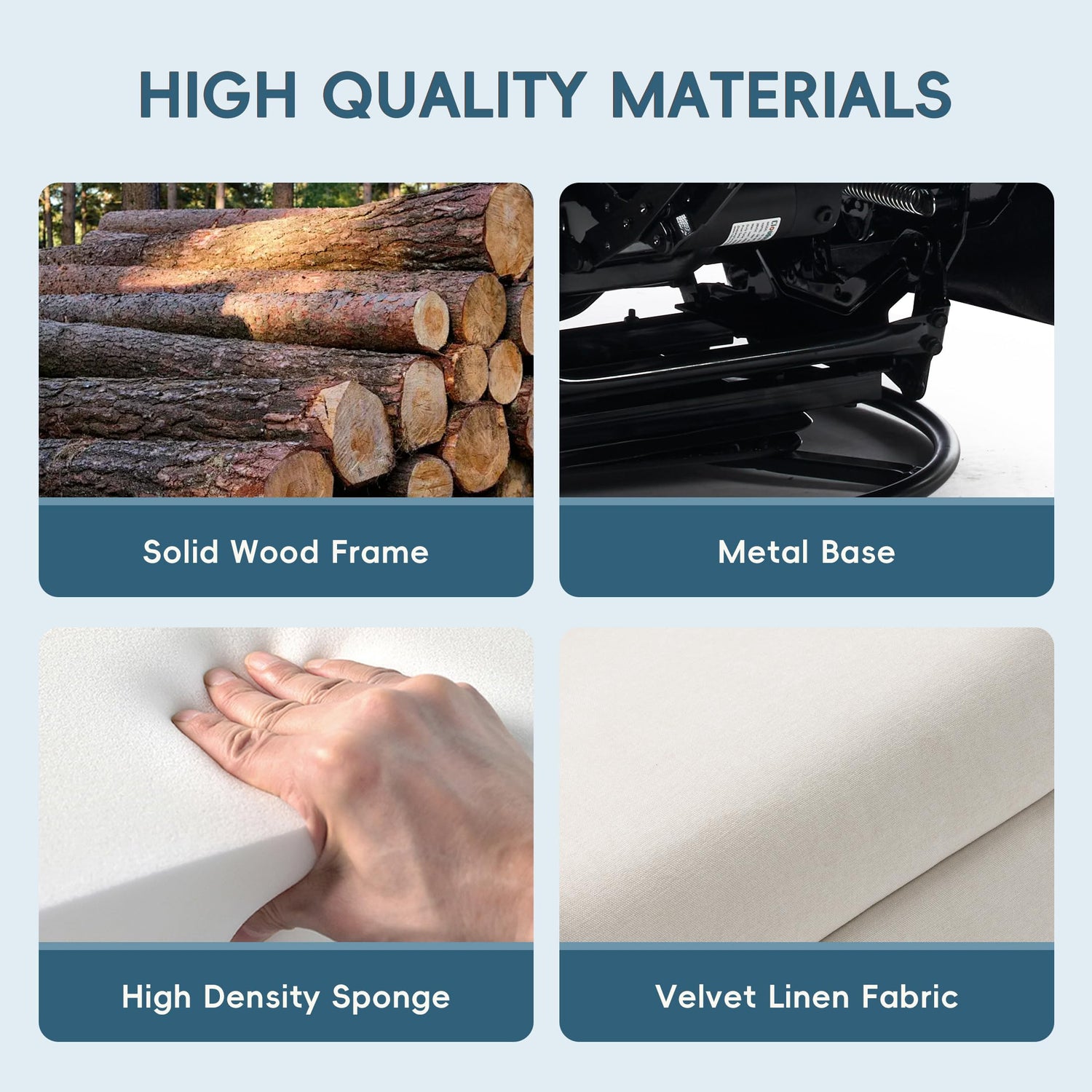 - Reliable Materials: Wrapped in cozy, skin-friendly velvet linen fabric that's not just soft but also breathable, ensuring a comfy experience.Frame made of FSC-Certified wood.