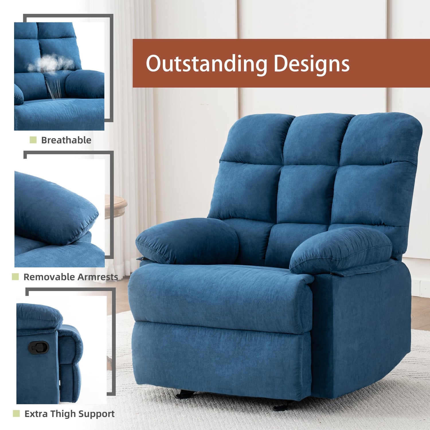 Ketaiyou Rocker Recliner Chair, Overstuffed Manual Rocking Recliner for Adults, Upholstered Comfy Soft Fabric Living Room Reclining Sofa Chair (Blue)