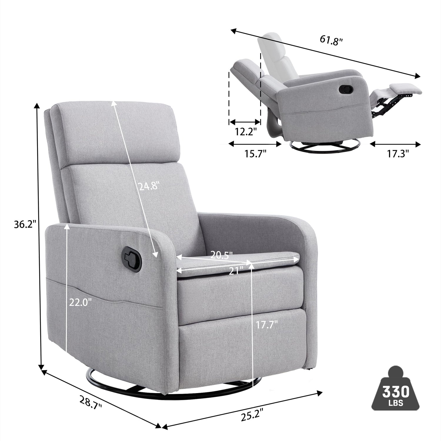 Ketaiyou Swivel Rocking Recliner Chair for Adults, Rocker Nursery Glider Chair for Living Room Bedroom, Upholstered Fabric Reclining Single Sofa Chair(Light Grey)