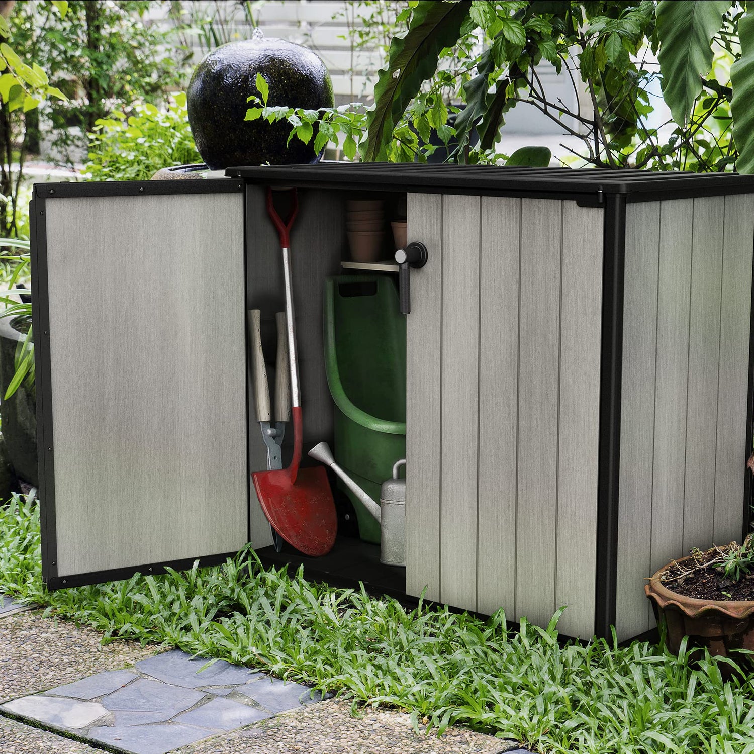 - LOCKABLE: Extra security for all of your outdoor storage needs. Works with standard padlocks, which are sold separately