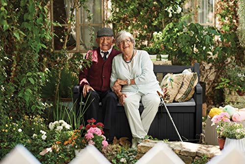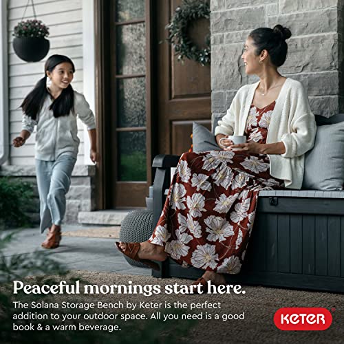 Keter Solana 70 Gallon Storage Bench Deck Box for Patio Furniture, Front Porch Decor and Outdoor Seating – Perfect to Store Garden Tools and Pool Floats, Graphite