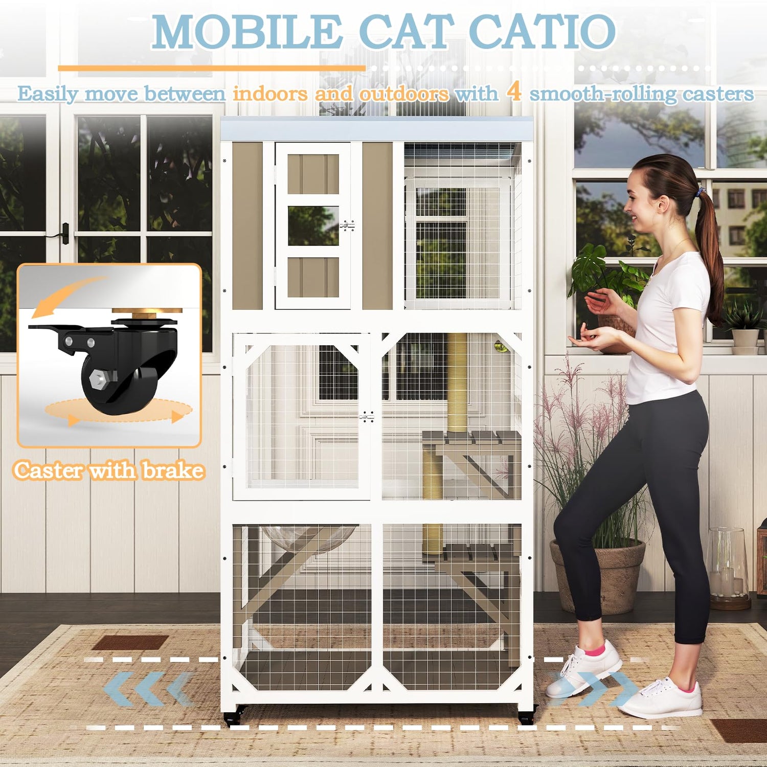 - 【Mobile & Flexible】 Equipped with 4 rolling casters, this cat house can be moved effortlessly from indoors to outdoors. Lockable wheels keep it steady and secure in place