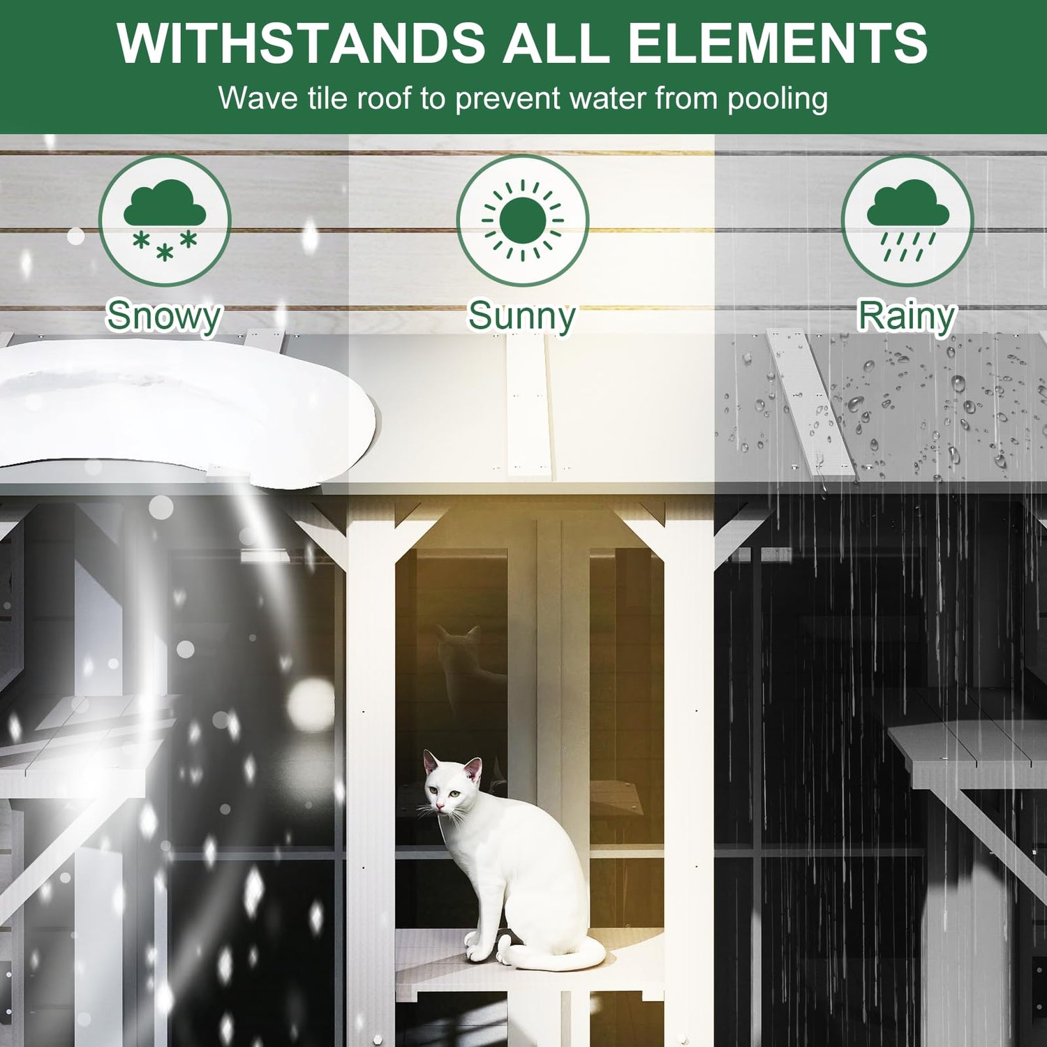 ketive Cat Catio, Expandable Window Box Enclosure for Multiple Indoor Cats, Comfortable Wooden Small Pet Perch House, All-Weather Use, Keep Bugs Insects Out, with 4 Platforms and 3 Doors