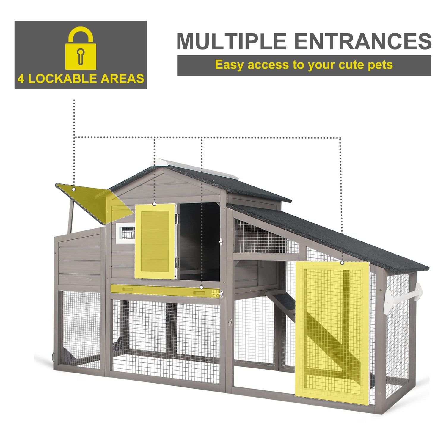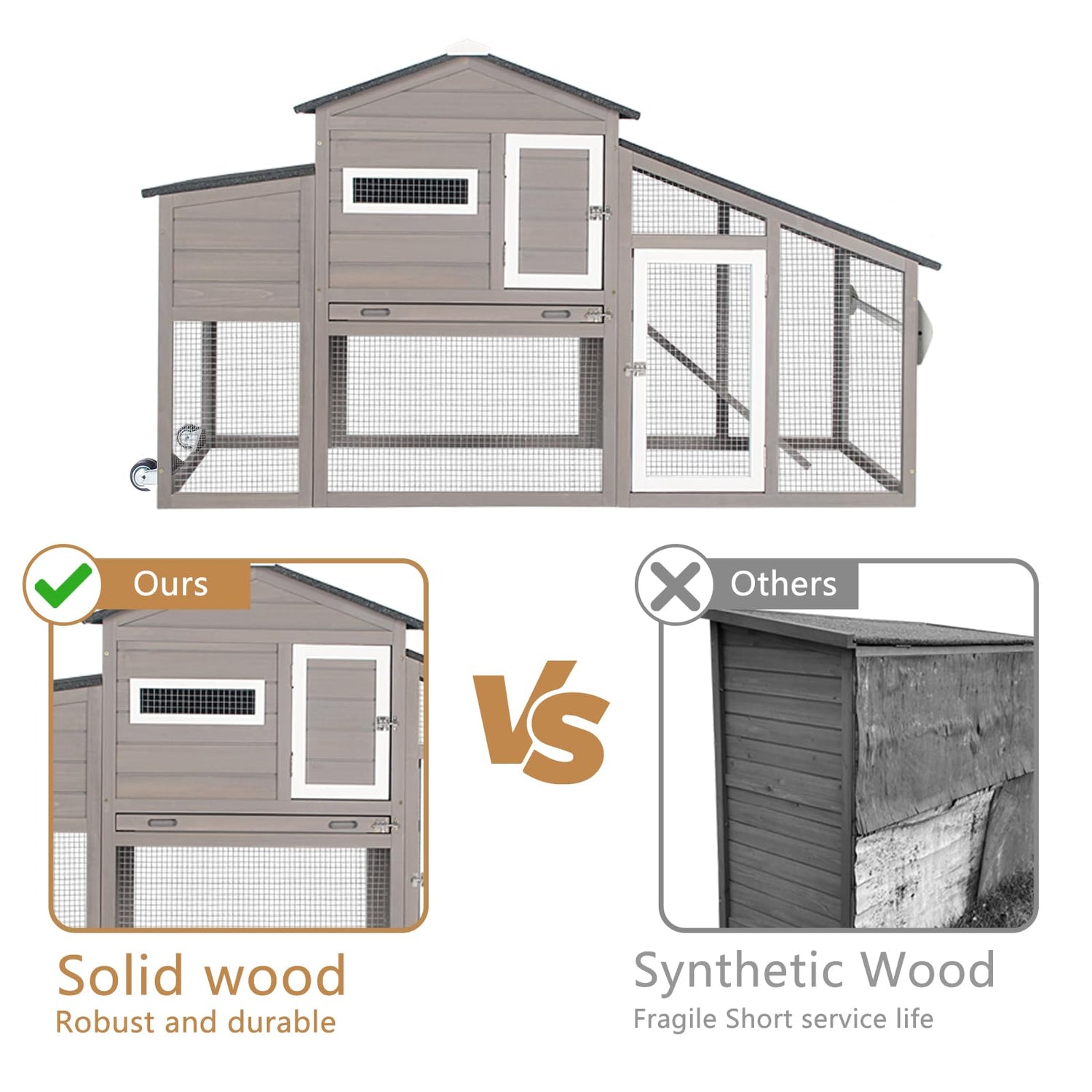 - 【Ample Space】The large chicken house helter offers plenty of room for your chickens to roam around, stretch their wings, and forage, promoting a happy and healthy lifestyle. Overall Chicken Coop Dimensions: 71.3"L x 26.14"W x 39.4"H, holds up to 1-4 chickens.