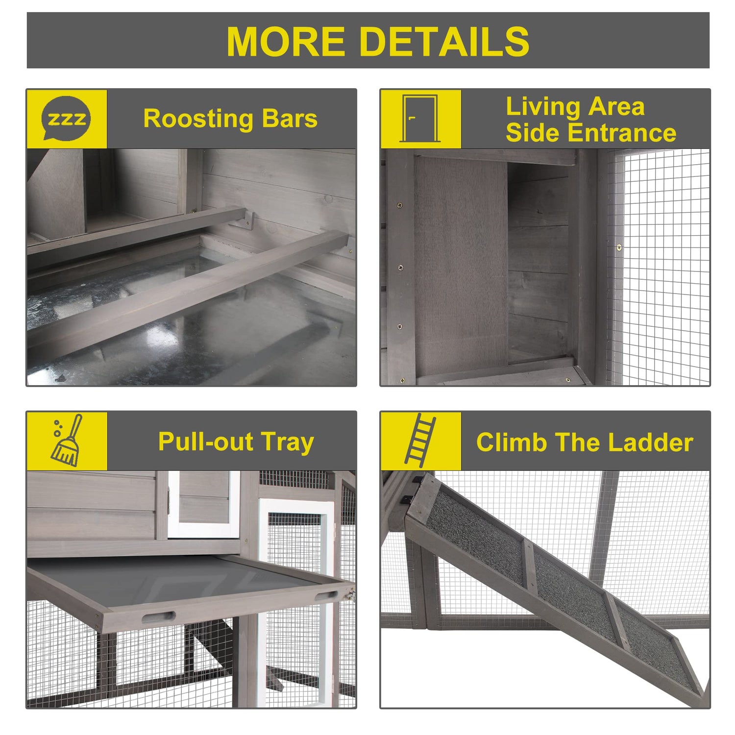 - 【Easy Cleaning & Good Ventilation】The hen house has a removable sliding tray for easy cleaning and galvanized wire fencing to protect your poultry from outside predators while ensuring good ventilation.