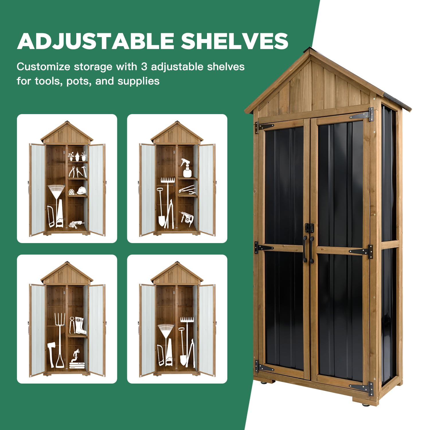- Hybrid Construction – Combines [fir wood framework] + [metal panels] , this outdoor storage cabinet ensures long-lasting durability while withstanding outdoor elements
