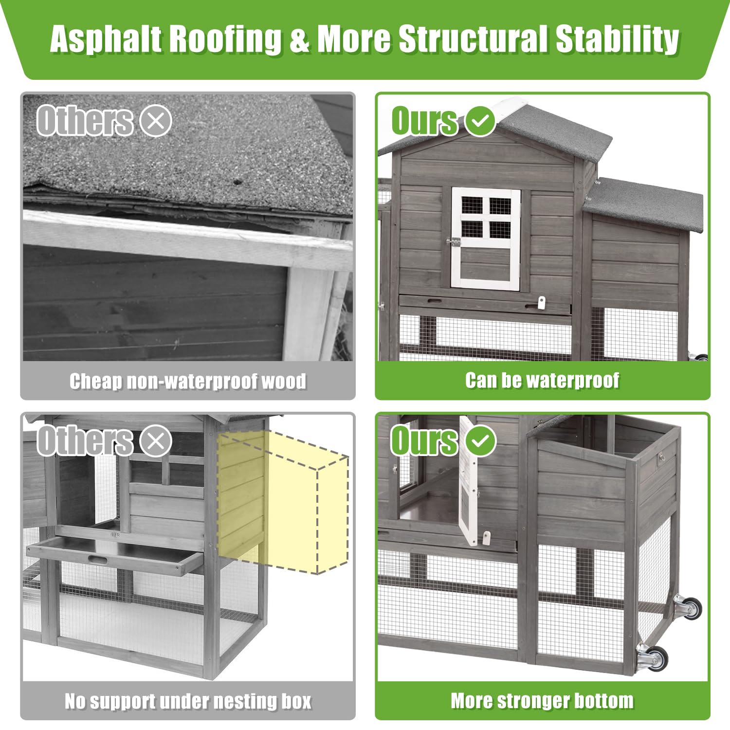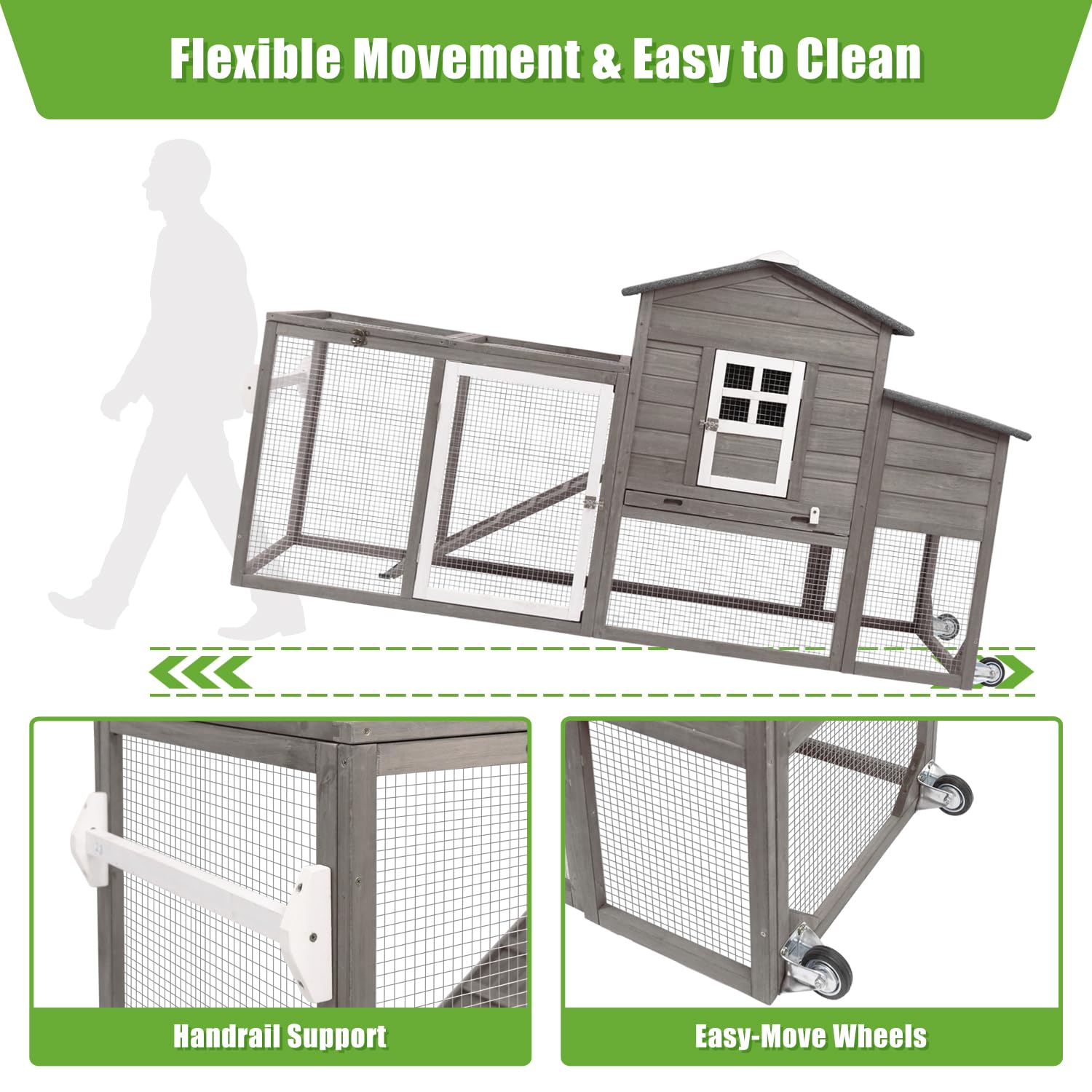 - MULTIFUNCTIONAL: This chicken coop with wheels can be used to house all poultry and pets such as chickens, ducks, rabbits, ferrets, hamsters, guinea pigs and other small animals