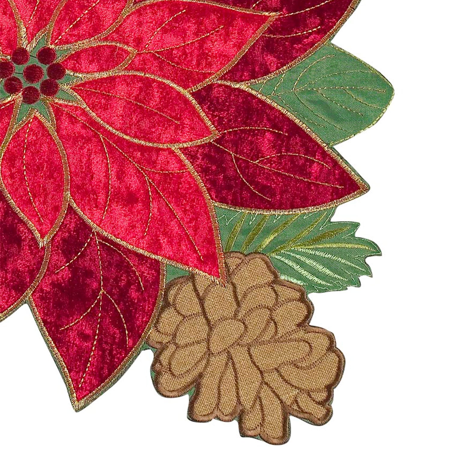 - Fiber: This Christmas table runner use two layers appliques with exquisite embroidery. The red and burgundy poinsettia flowers made with high quality 100% polyester velvet fabric to give the softness and comfortable touch