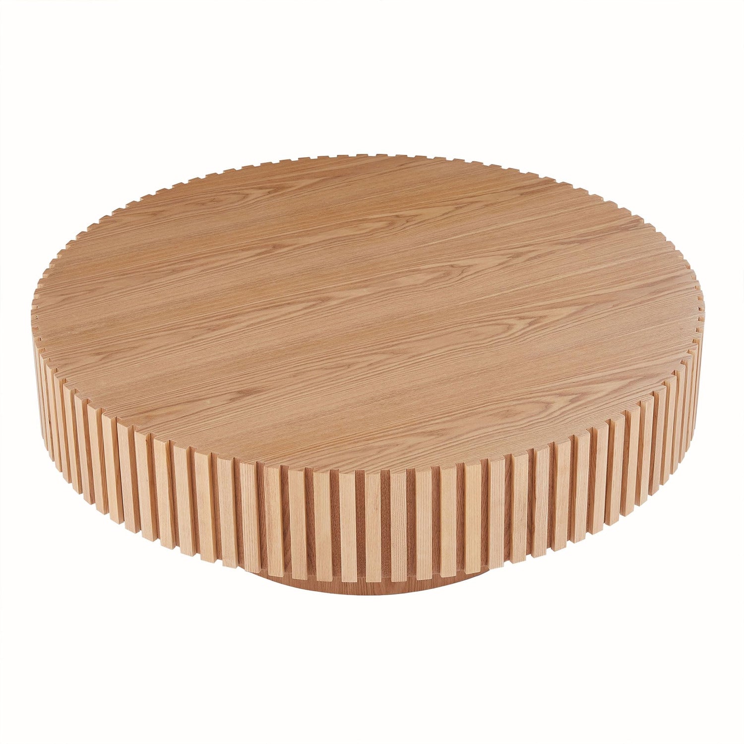 kevinplus 31.49'' Oak Round Coffee Table Modern Wood Coffee Table for Living Room, Contemporary Circle Fluted Drum Coffee Table, Easy Assembly, Oak (ø31.49'' x 13.77'')