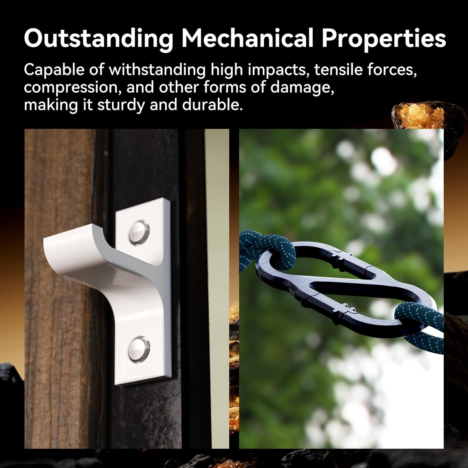 - Heat Resistance and Low Creep:Our polycarbonate filament with heat deflection temperatures in excess of 100°C, parts can be subjected to temperatures of 100°C for short periods of time without deformation under certain loads. This reduces the likelihood of failure and damage or even accidents due to creep deformation and fracture.