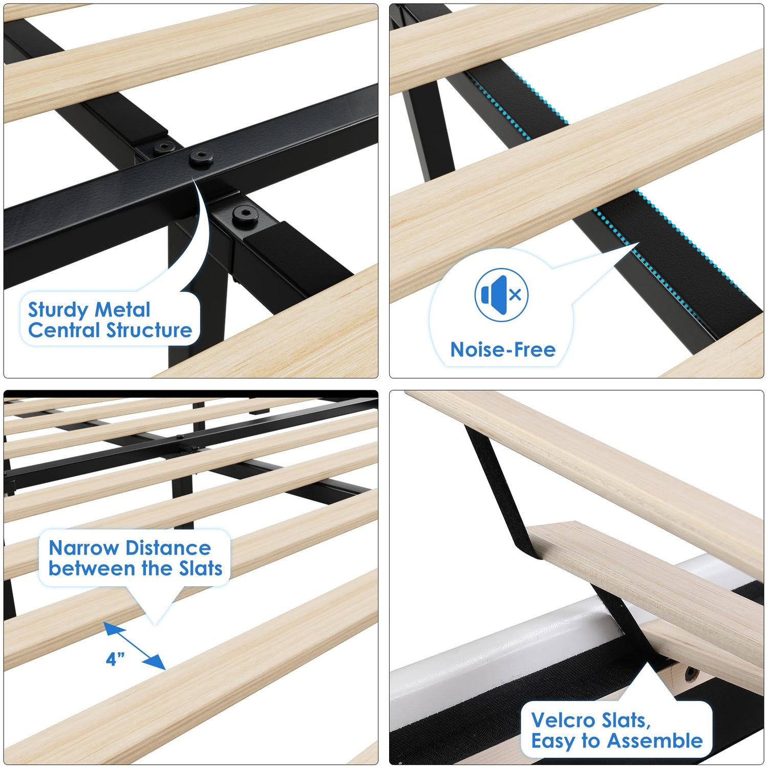 No more worries about noisy disturbances during the night. The robust metal framing is constructed for durability, ensuring a sturdy, noise-free experience. The headboard and slats are made from quality engineered wood, providing enhanced stability while supporting your mattress without the need for a box spring.