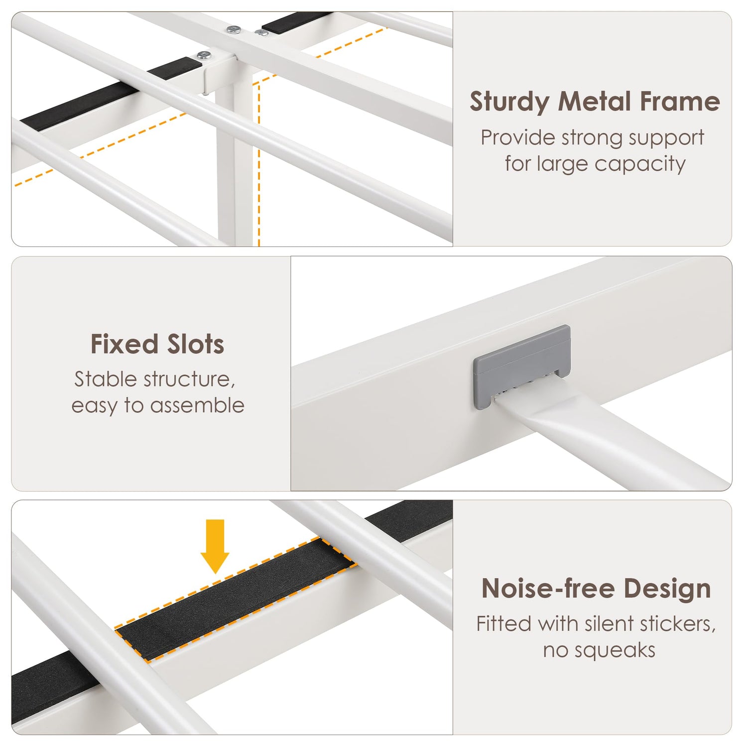 - Noiseless and Sturdy Structure: This bed is constructed of a metal frame, 17 solid steel slats, and metal legs to provide strong support. The powder coating is scratch-resistant and not easy to oxidize, making it safe and reliable for long-term use. Non-slip foot pads protect the floor from scratches. Plastic silent clips can fix the metal slats and prevent noise. Weight Capacity: 800 lbs