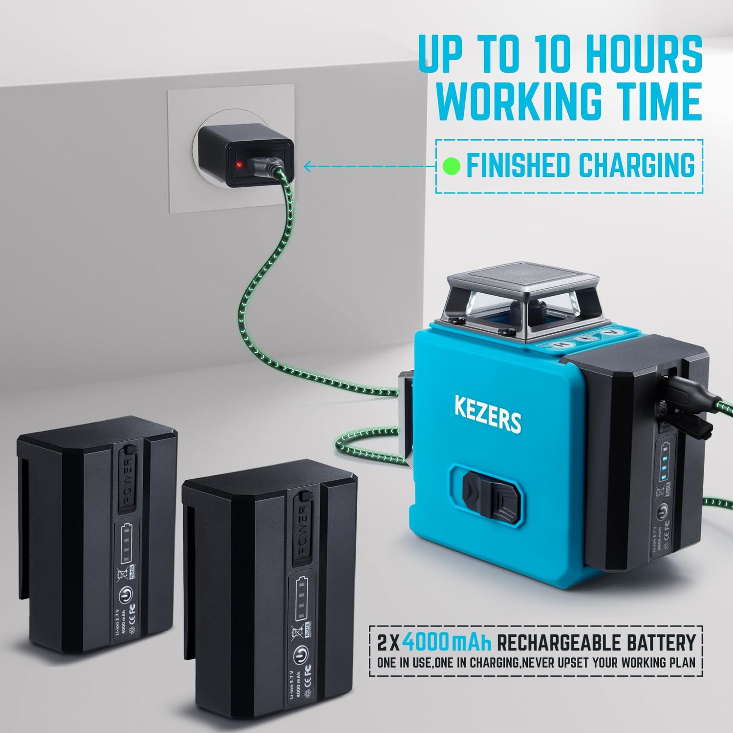 KEZERS Laser Level with Tripod,3 x 360 Self Leveling Laser Level, Green Laser Level Line Tool for Picture Hanging,Construction,Remote Controller,Rechargeable Battery,L-Bracket & Carry Pouch Included