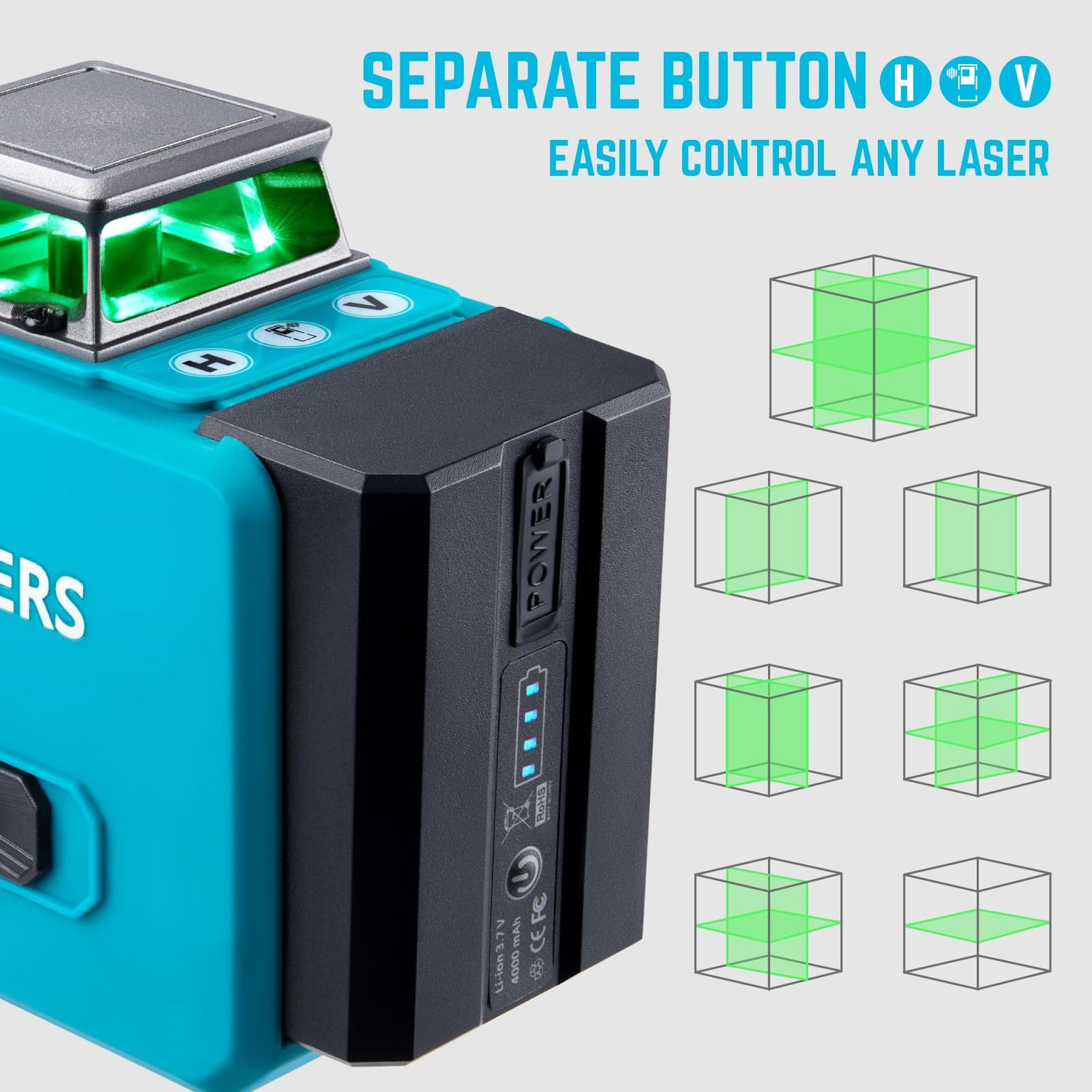 • 【High-Visibility Green Laser Beams】 : Benefit from bright green laser beams that are highly visible even in well-lit environments, improving accuracy and making measurements easier and more efficient