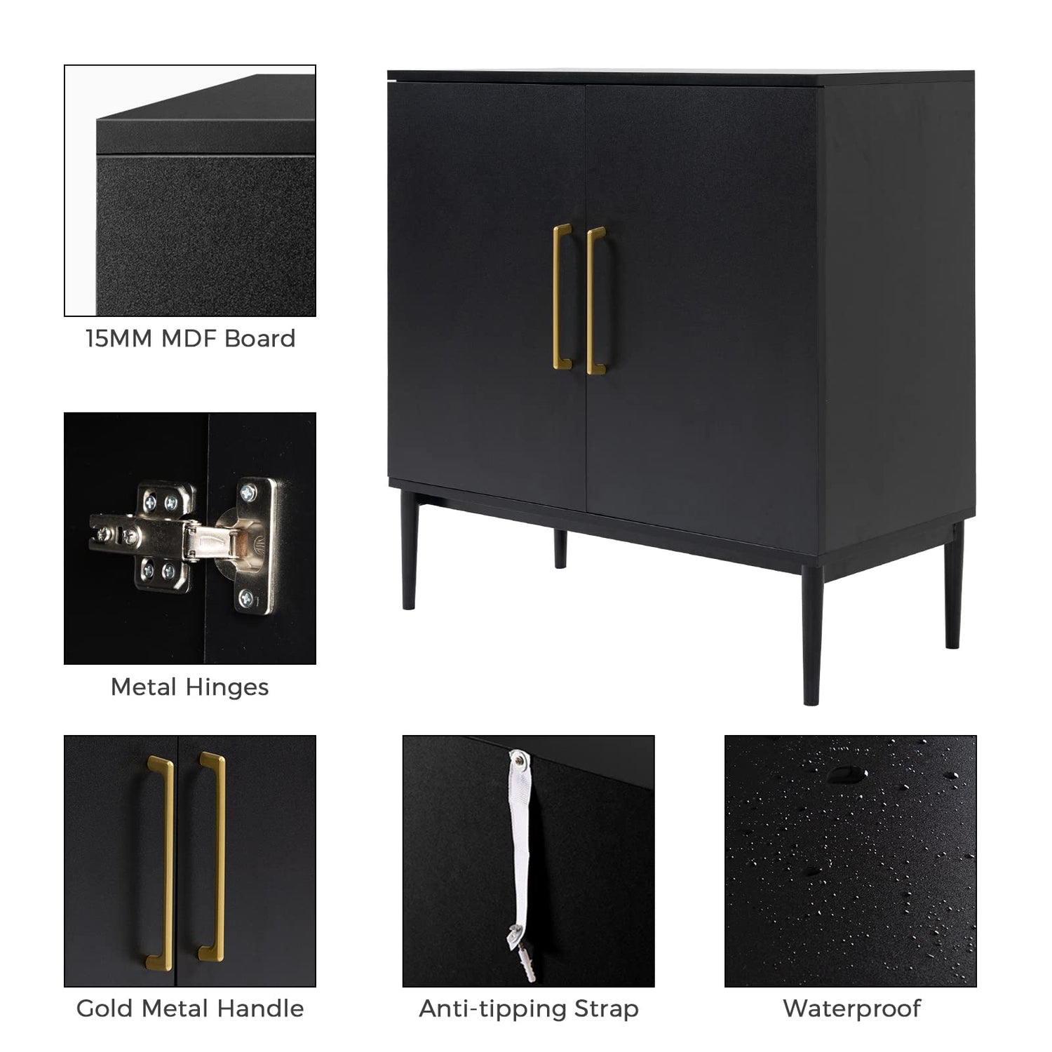 KFO Storage Cabinet with Doors, Black Accent Cabinet, Modern Free Standing Cabinet, Black Sideboard with Metal Base for Bedroom, Living Room, Kitchen and Office
