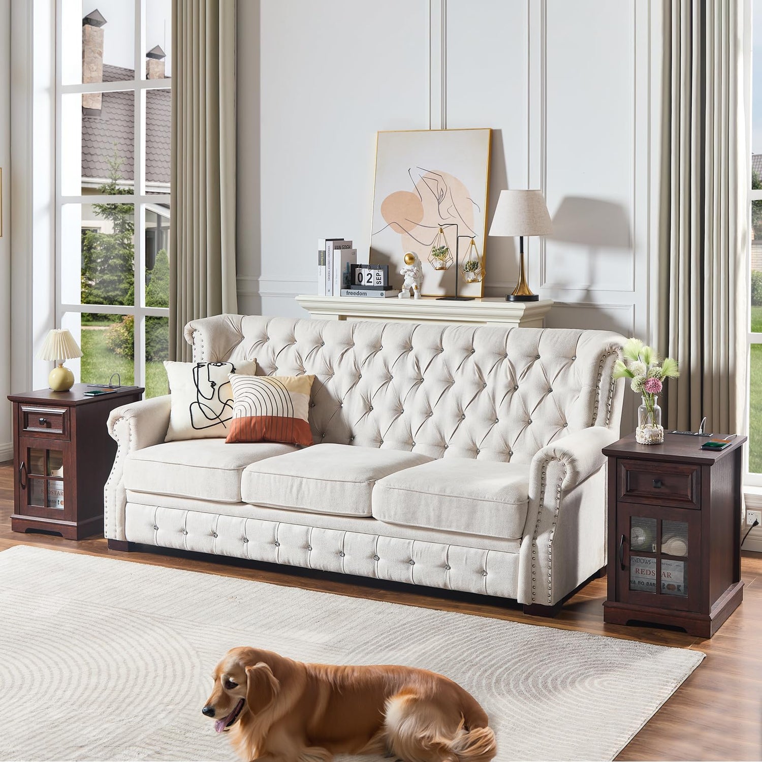 - đăSide Table with Charging StationăLow battery? Don't worry. This end table comes with 2 AC outlets, 2 USB ports and a 6.56ft power cord for your charging needs. You can easily charge mobile phones and other devices as you need. Faster charging efficiency, stabler charging and no damage to your devices!