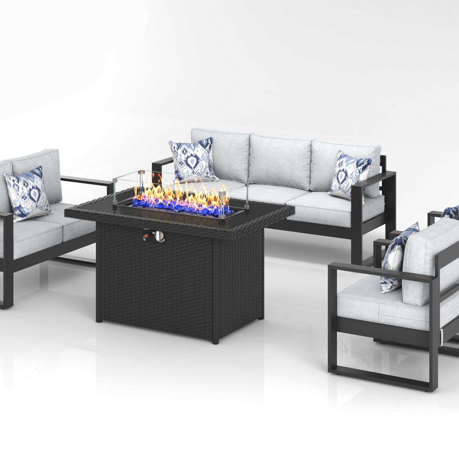 KHOLH 5 Piece Modern Aluminum Patio Furniture Set with Fire Pit Table, Outdoor Patio Sectional Conversation Metal Seating Sets with Olefin Cushion