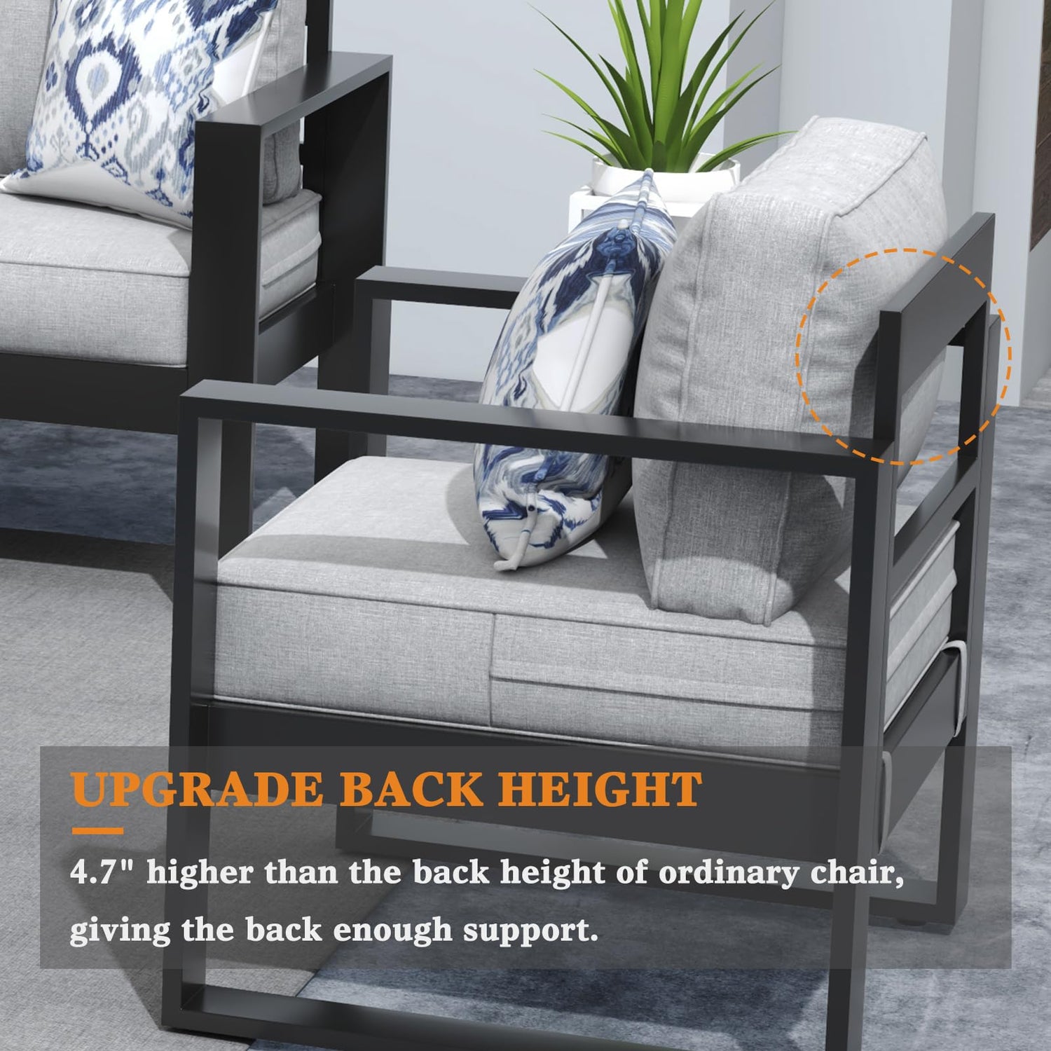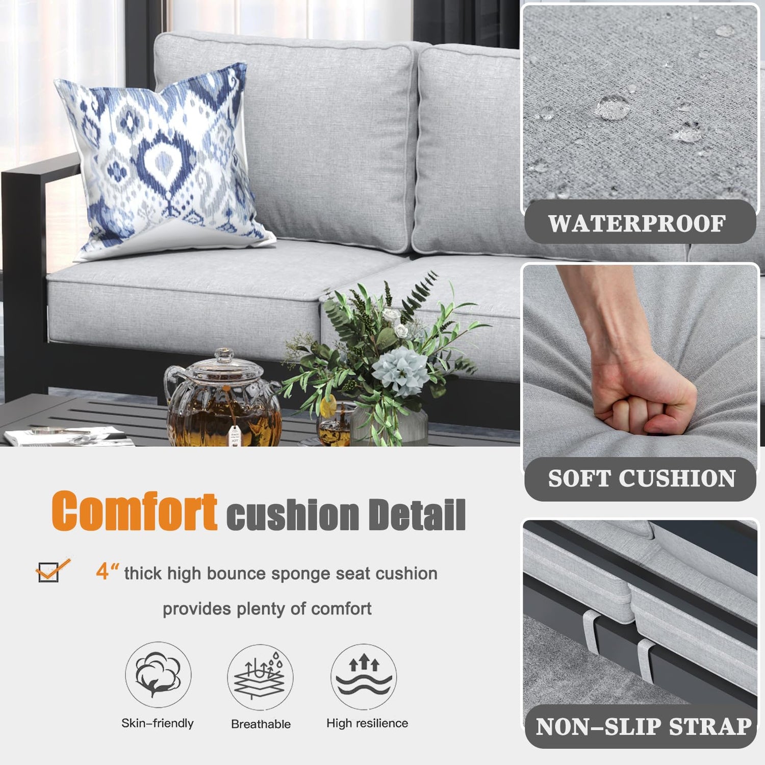 - PRODUCT INCLUDING: This aluminum furniture set includes 2 x armchairs, 1 x loveseat, 1 x 3-seat sofa, and 1 x fire pit table. Come with 4 boxes that may not arrive at the same time.
