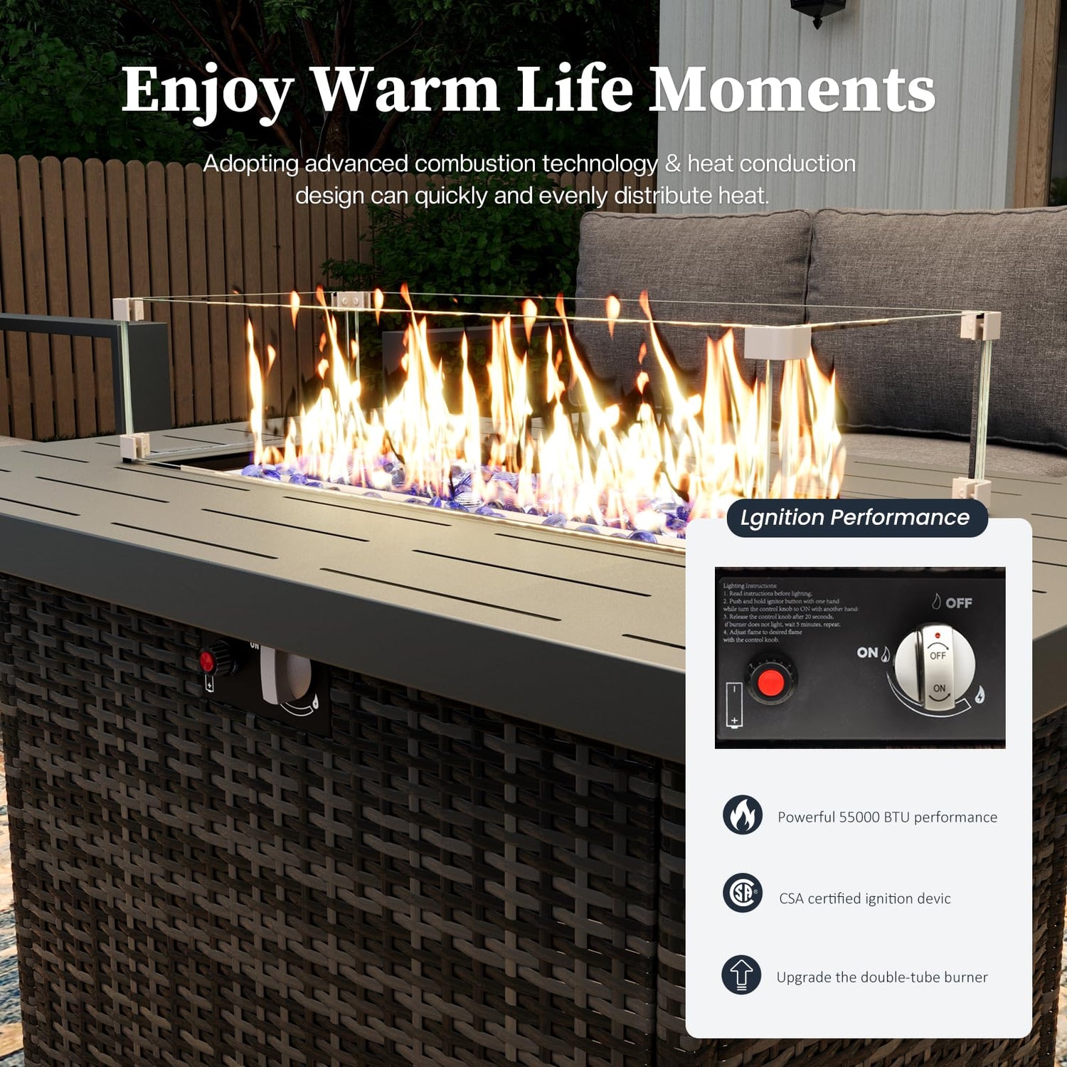 - 60000 BTU FIRE PIT TABLE: CSA certified ignition device, let your family use more at ease.Upgraded dual-tube burner to provide more stable combustion.Comes with a steel cover lid, can be easily converted into a nice outdoor coffee table.