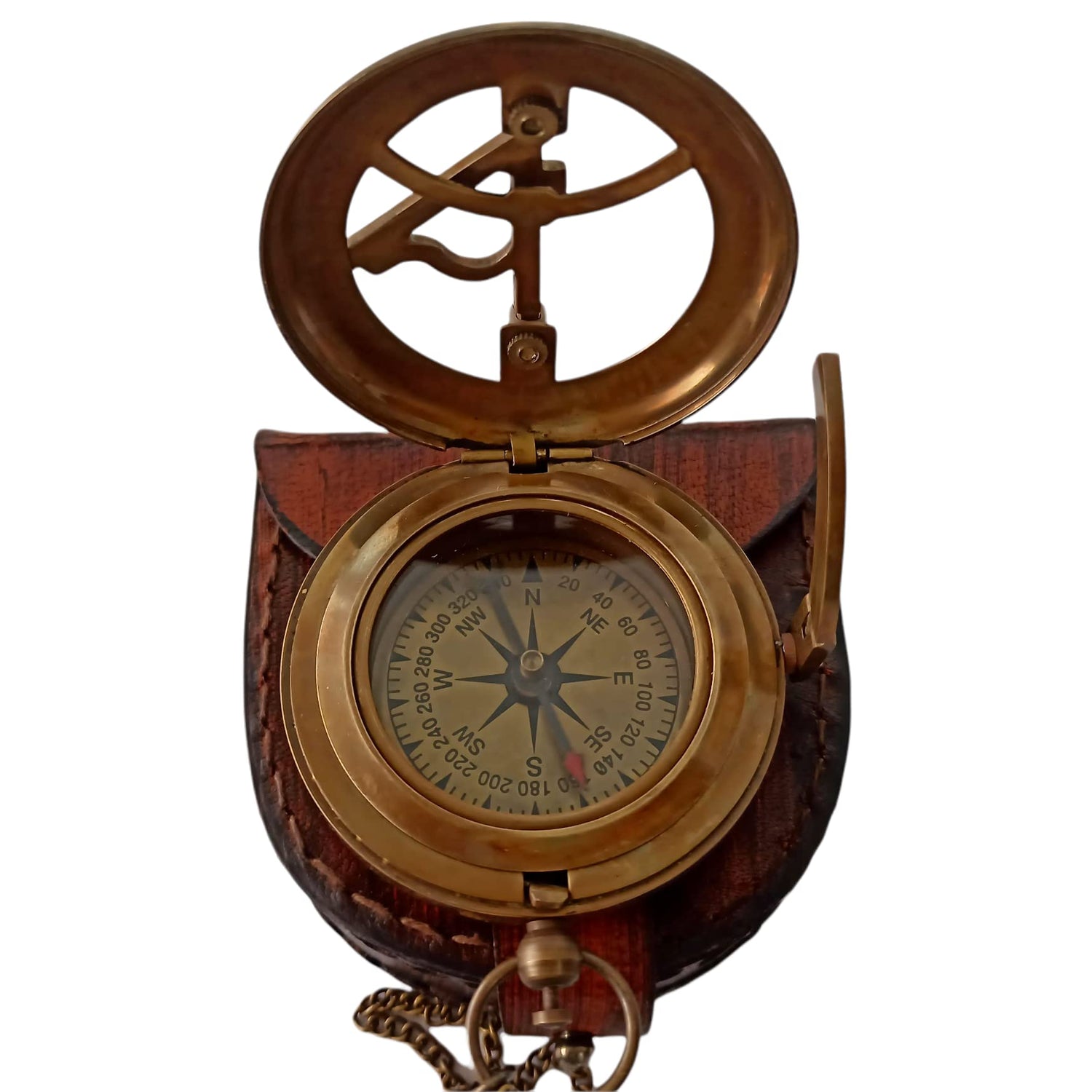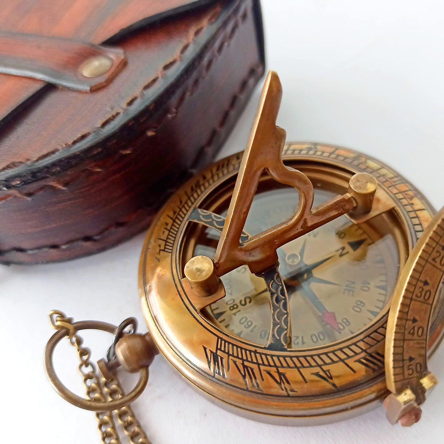 - Brass Compass with chain and Leather Case Each compass is individually crafted and carefully packaged safely.