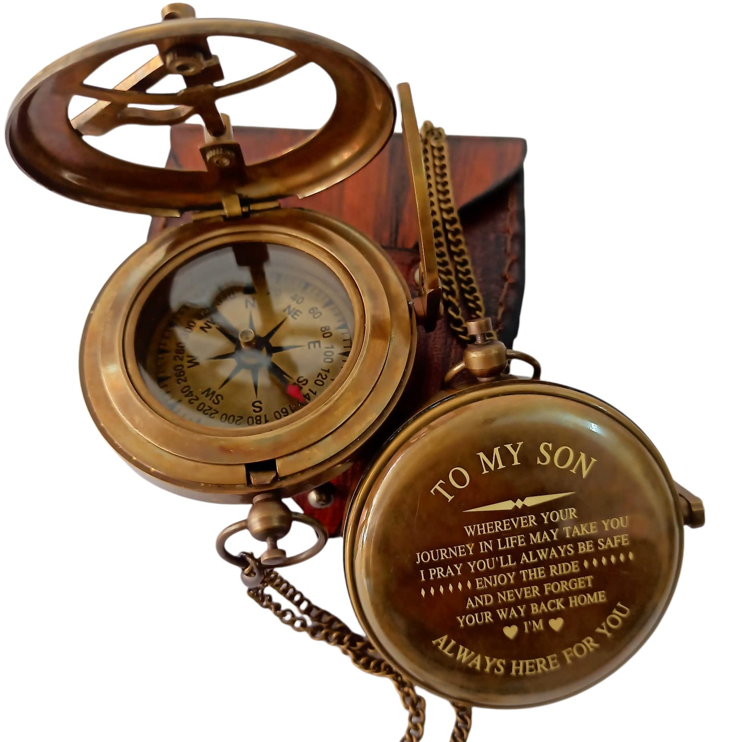 Khybex International to My Son Compass Personalized Sundial Compass with Leather Case/Gift for Son/to My Son Gifts/Mom to Son Gift/Dad to Son/Grandson Gift, Directional Magnetic Sundial Compass
