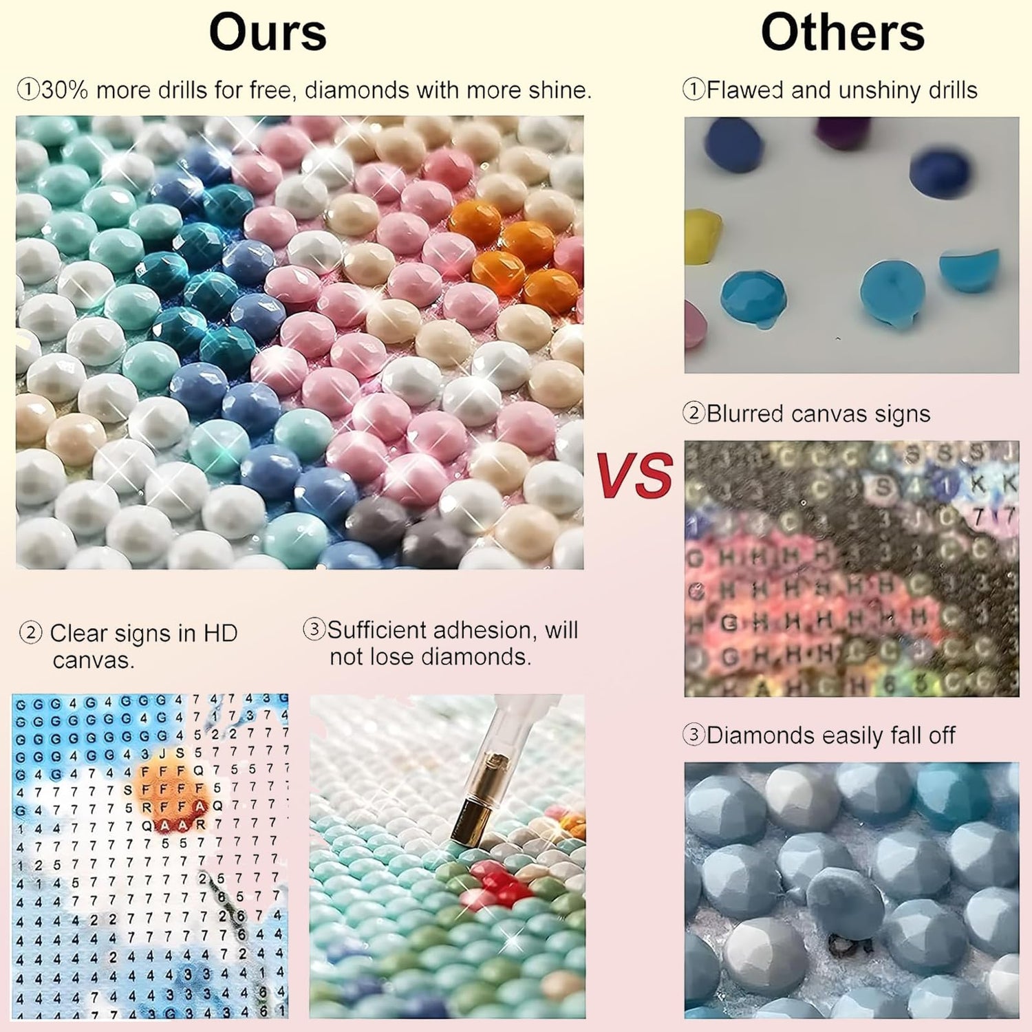 - High Quality Diamonds:Each diamond dot has 26 facets that sparkle in the light and sunlight;Each diamond painting kit has an additional 30% diamonds to make the diamond art craft well finished;Color is not easy to fade and lasts for a long time