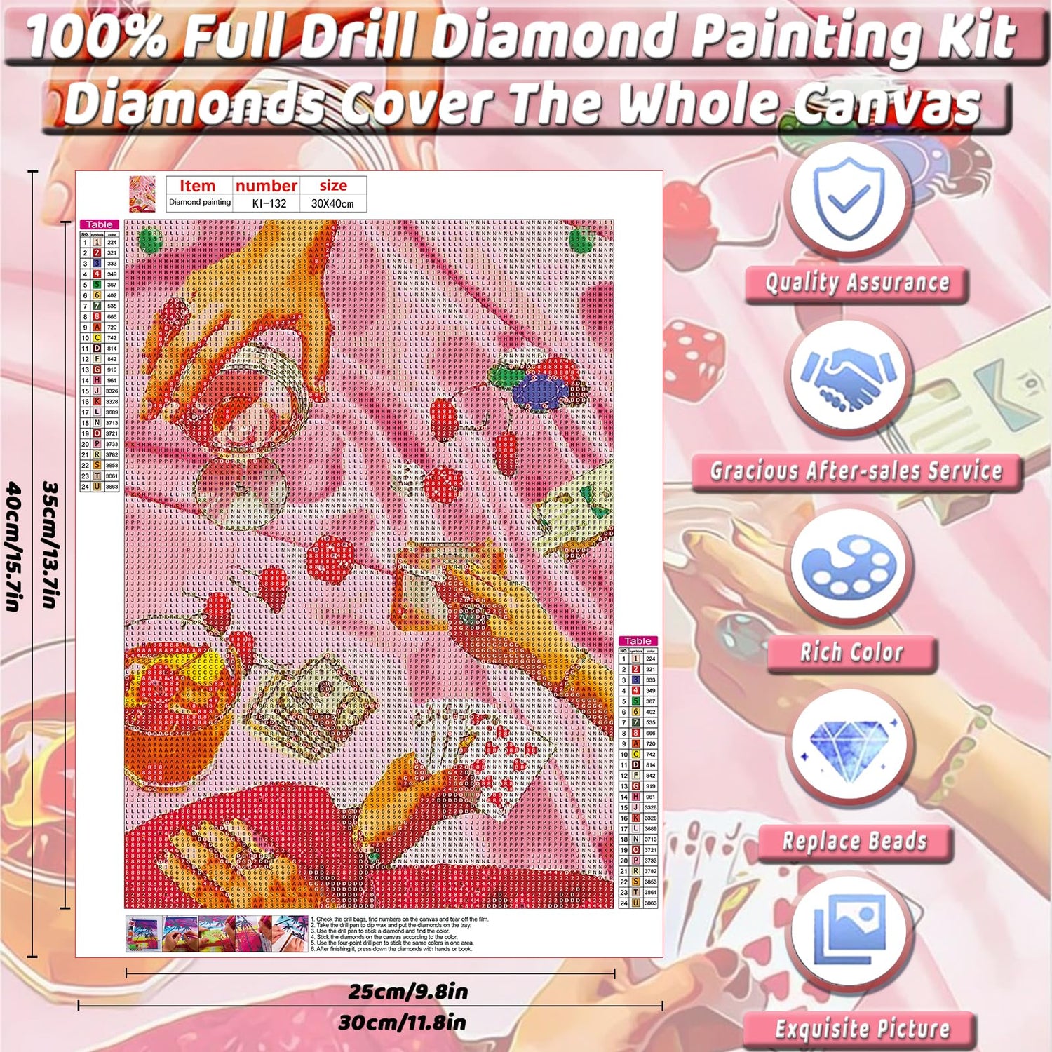 KICHANG Pink Diamond Art Kits for Adults Beginner,DIY Modern Diamond Painting 5D Round Full Drill Diamond Dots Gem Art Crafts with Tools,Funny Crafts for Home Wall Decor&Gift-12x16in