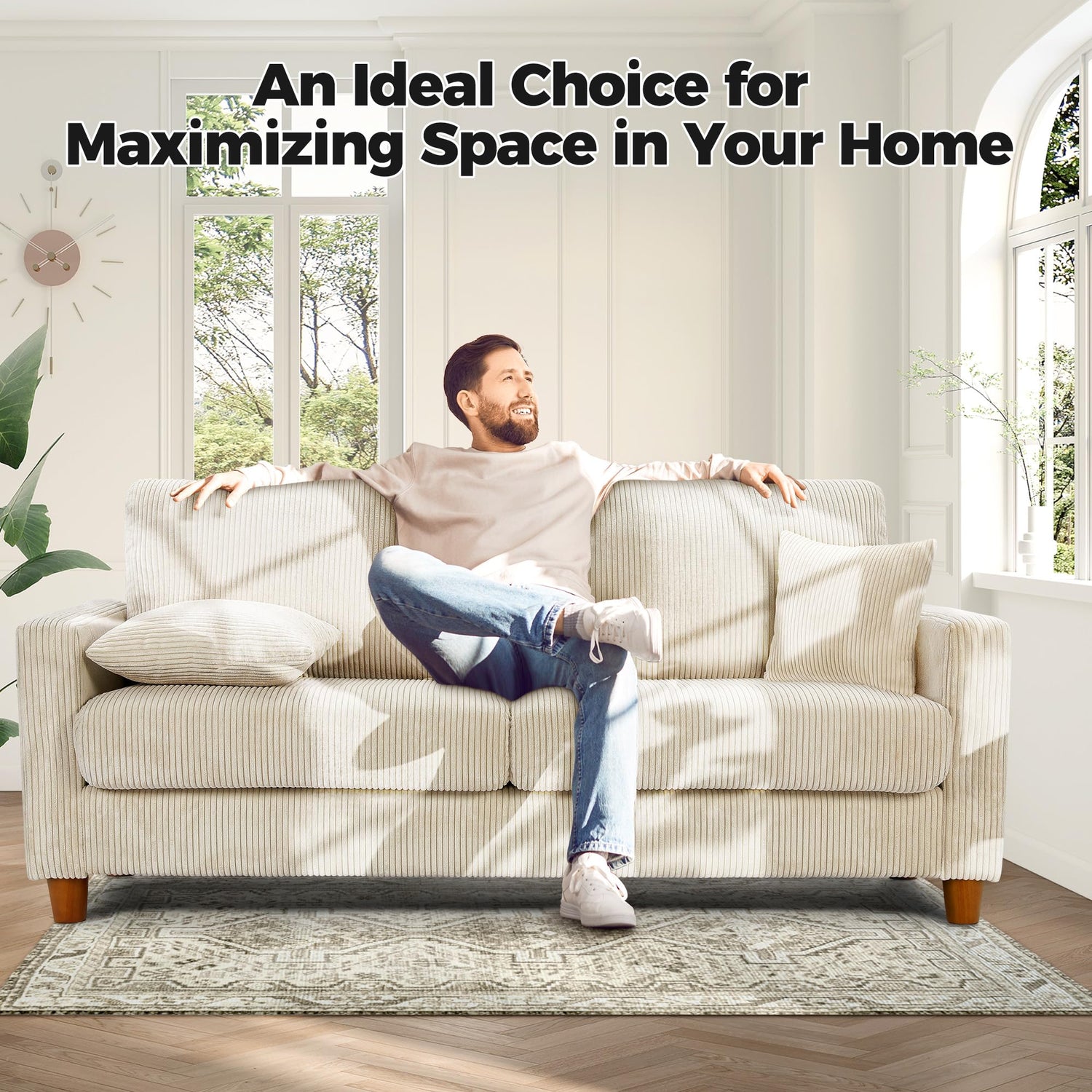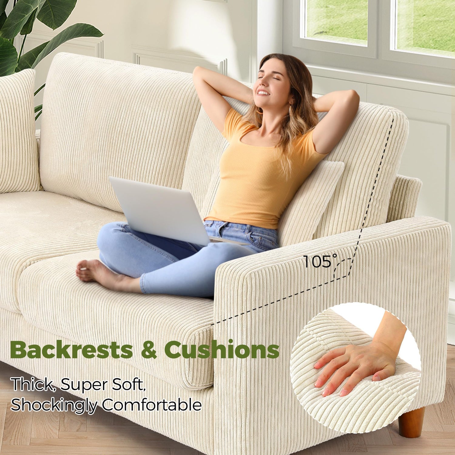 - 【 Corduroy Stays Cozy Year-Round 】 The beige corduroy couch isn't just soft; it hugs you. The luxurious fabric feels cozy against your skin, blending comfort with the "at-home" warmth we all crave. Rest your cheek against the loveseat sofa, and you'll feel wrapped in security. It's durable, too; the corduroy resists wear and tear. It will retain softness and look like new, even with daily use. It's breathable, keeping you cool in summer and warm in winter. No more overheating during movie night!