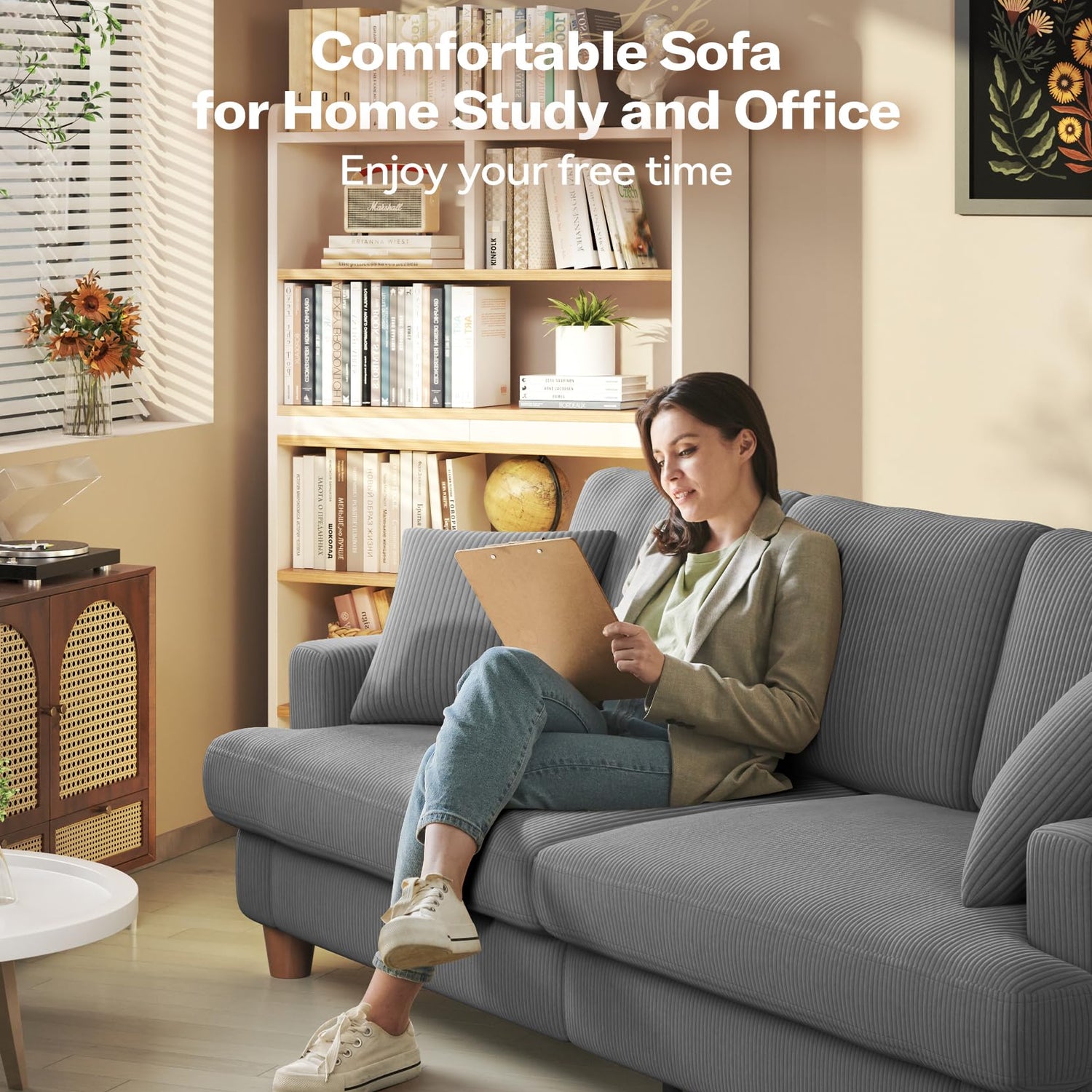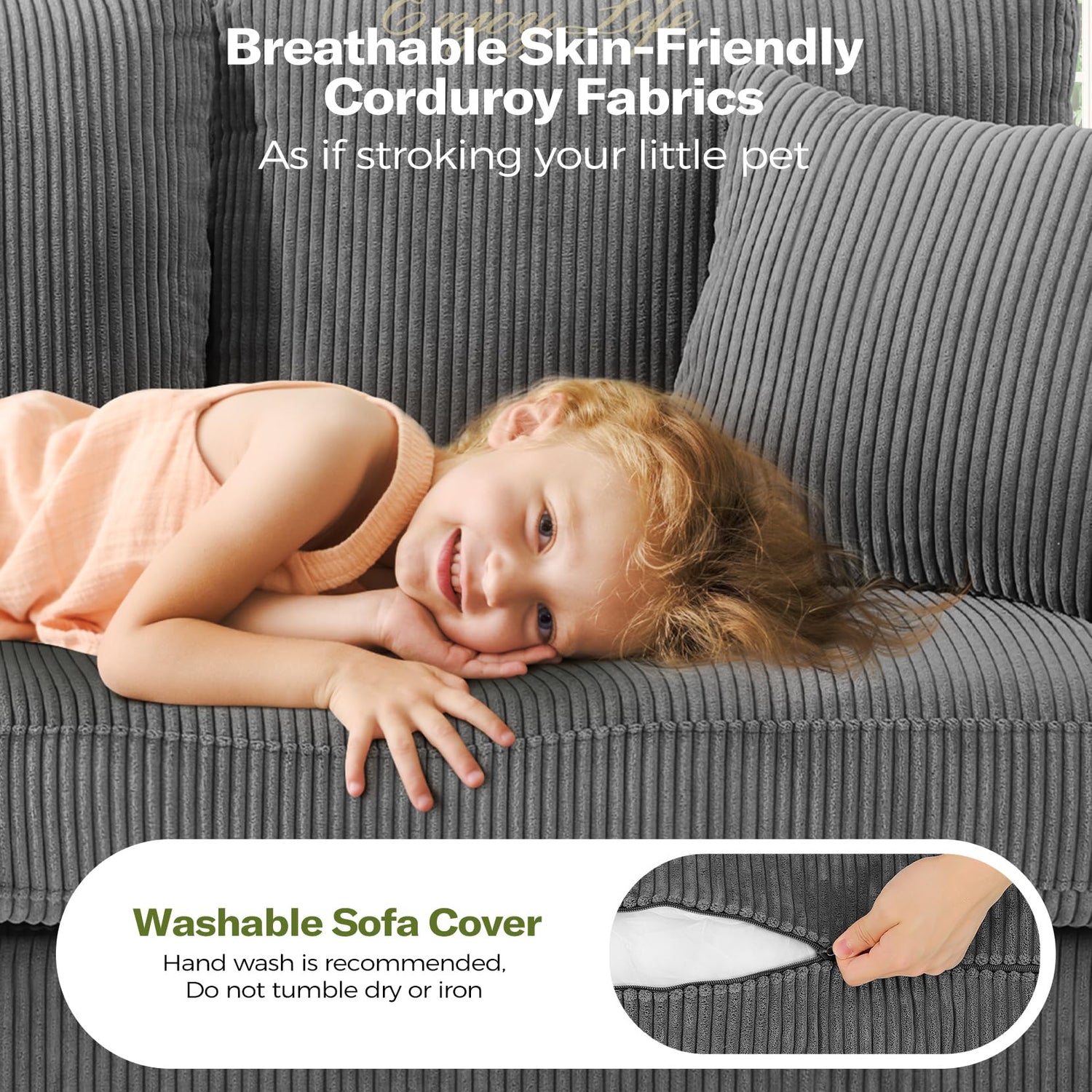 - 【 Corduroy Stays Cozy Year-Round 】 The grey corduroy couch isn't just soft; it hugs you. The luxurious fabric feels cozy against your skin, blending comfort with the "at-home" warmth we all crave. Rest your cheek against the loveseat sofa, and you'll feel wrapped in security. It's durable, too; the corduroy resists wear and tear. It will retain softness and look like new, even with daily use. It's breathable, keeping you cool in summer and warm in winter. No more overheating during movie night!