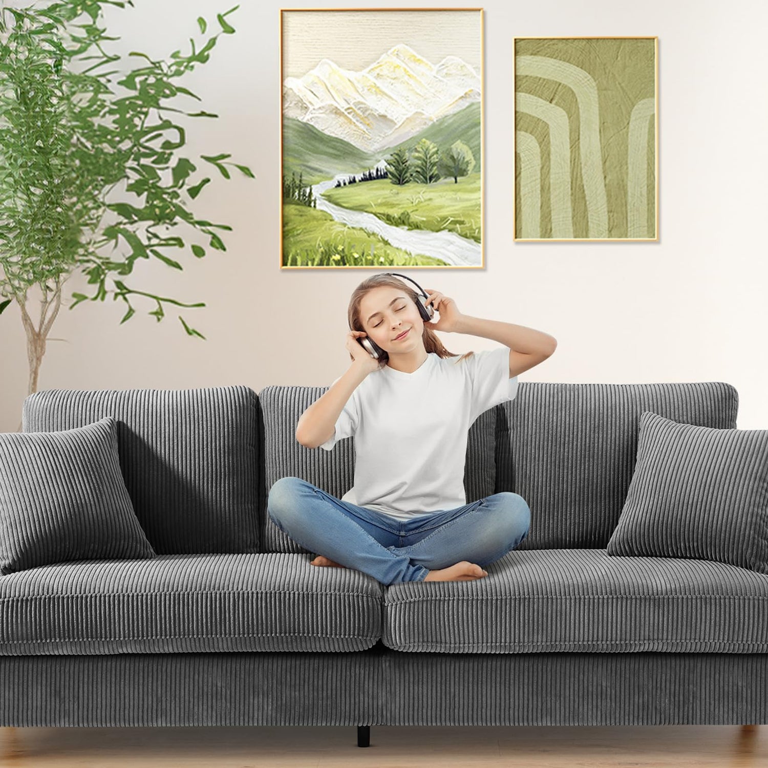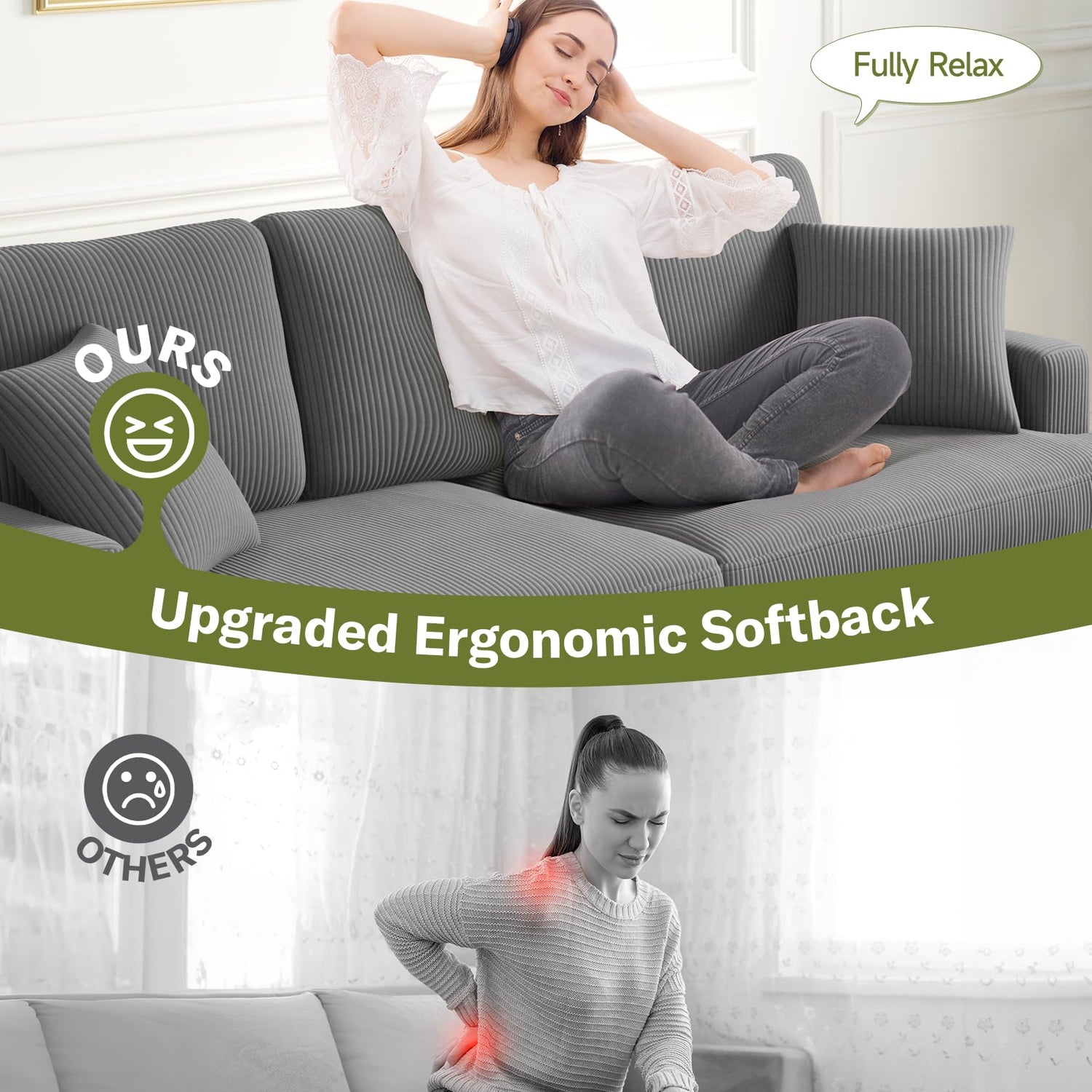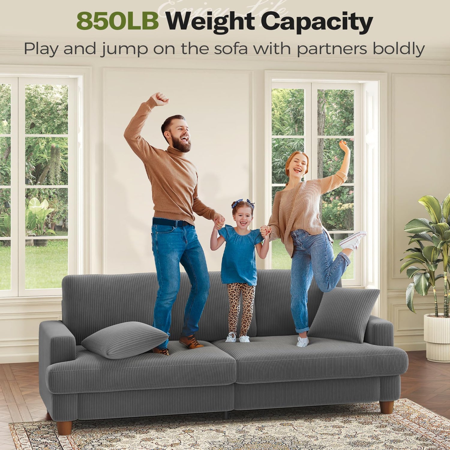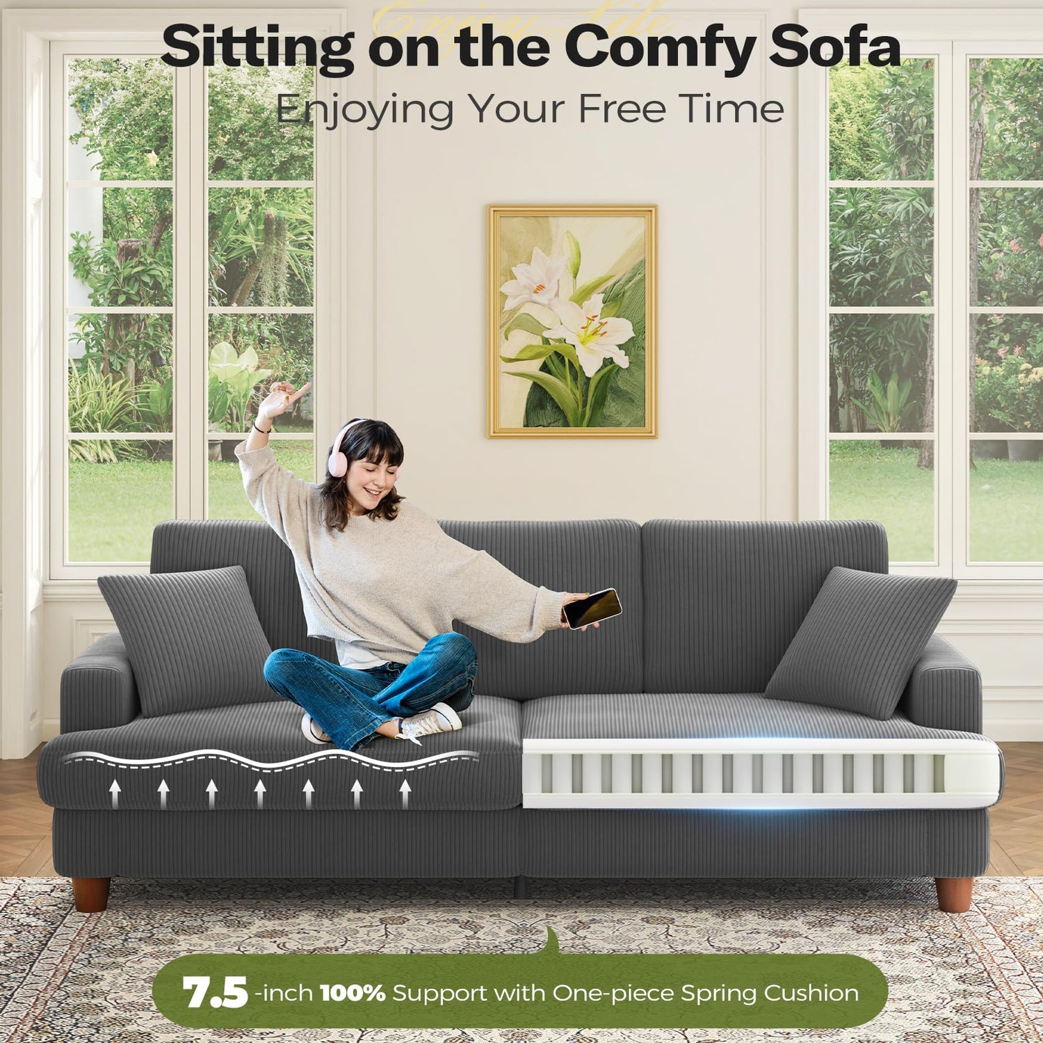 Kidirect 87in Corduroy Couch, Sofas for Living Room No Tool Assembly, Comfy Couches for Living Room 21in Deep Seats, Oversized Loveseat Sofa with 2 Pillows, 3 Seater Couch for Bedroom,Grey Sofa