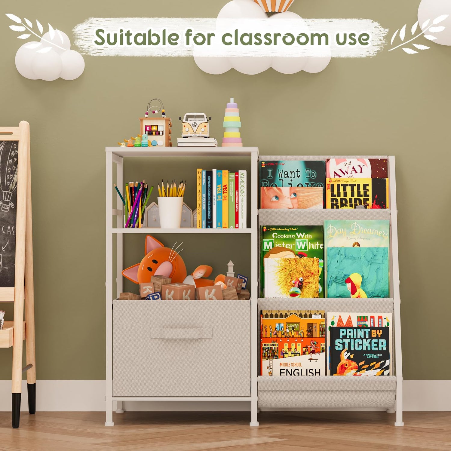 Kids Bookcases Montessori Bookshelf Nursery Book Shelves And Toy Storage With Drawer Childrens Toddler Bookshelf Sturdy Metal Kid's Toy Storage Organizer For Kids' Rooms Playroom kindergarten